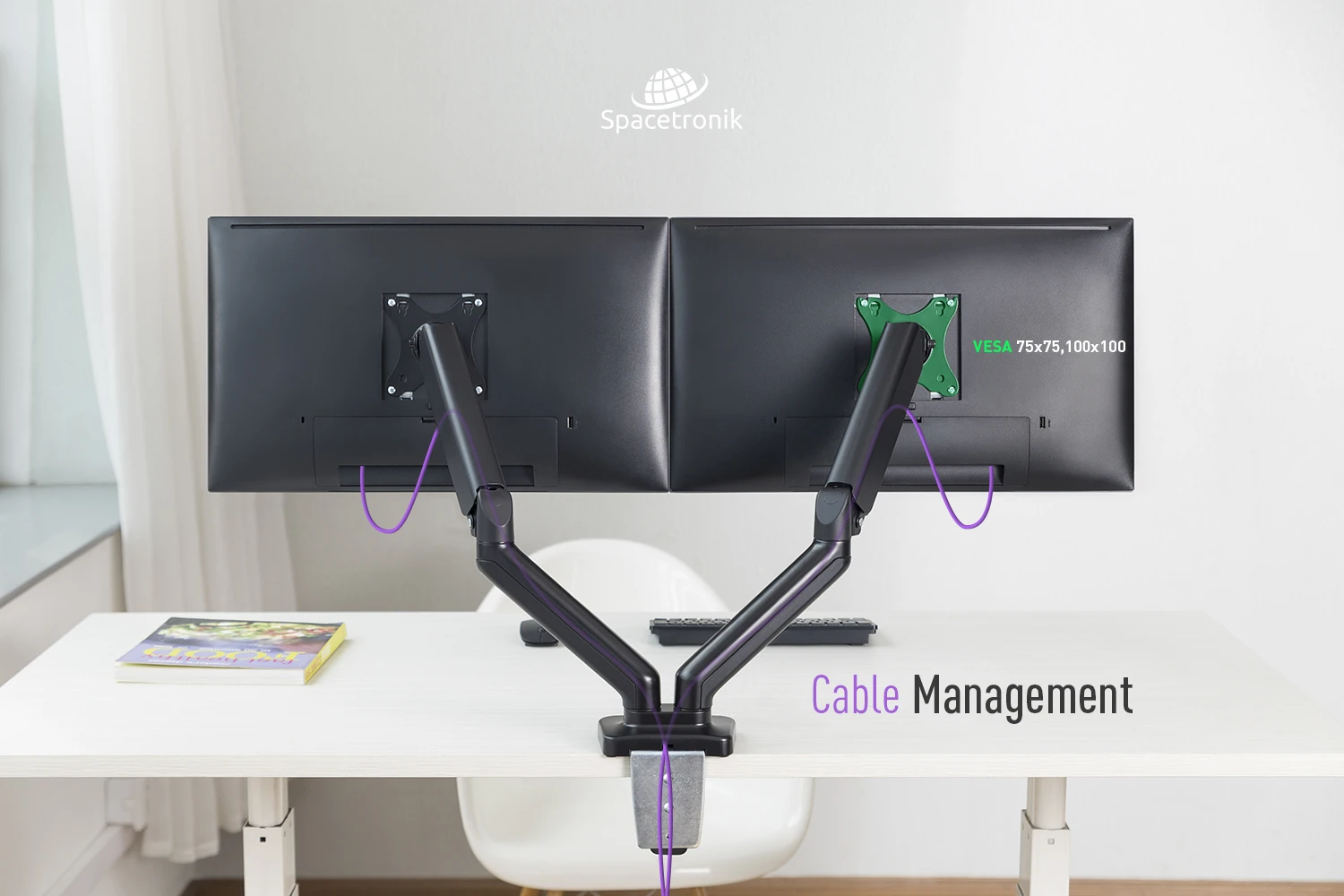 Możliwość instalacji na większości blatów biurek, stołów itp . Zdejmowany uchwyt VESA w celu łatwej instalacji do monitora. Dołączone klipsy kablowe zapewniają zorganizowane i wolne od bałaganu miejsce pracy.