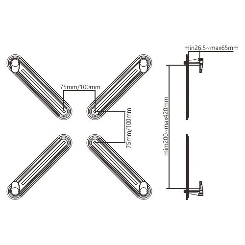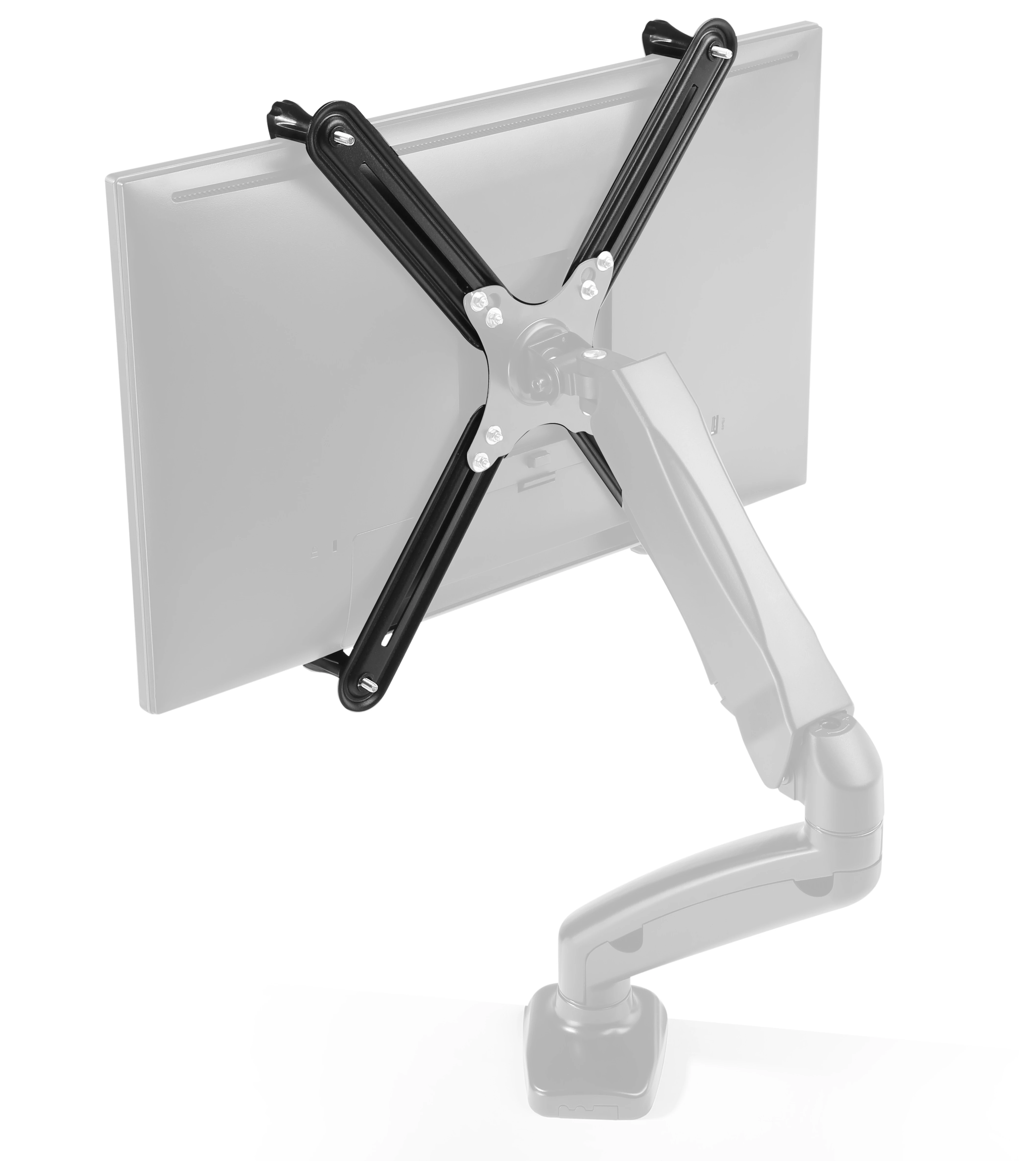 Ten adapter obsługuje większość monitorów 13"-27" o grubości od 26,5 mm do 65 mm. Umożliwia zamontowanie monitora innego niż VESA na prawie każdym ergonomicznym ramieniu monitora i regulację w celu zwiększenia komfortu oglądania.