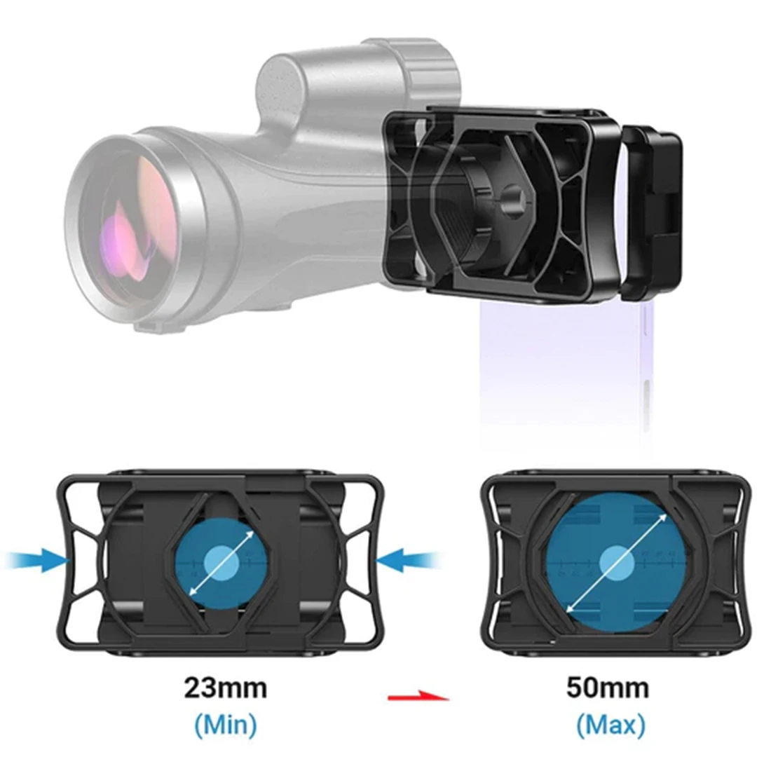 Uniwersalny adapter optyki to proste urządzenie, które pozwala na podłączenie smaprthpona do lornetki, monokularu, teleskopu lub mikroskopu. Takie rozwiązanie pozwala fotografować przyrodę w całkiem nowy sposób. Uchwyt jest kompatybilny z większością telefonów. Dzięki regulacji bez problemu zamontujemy go na każdym standardowym okularze.