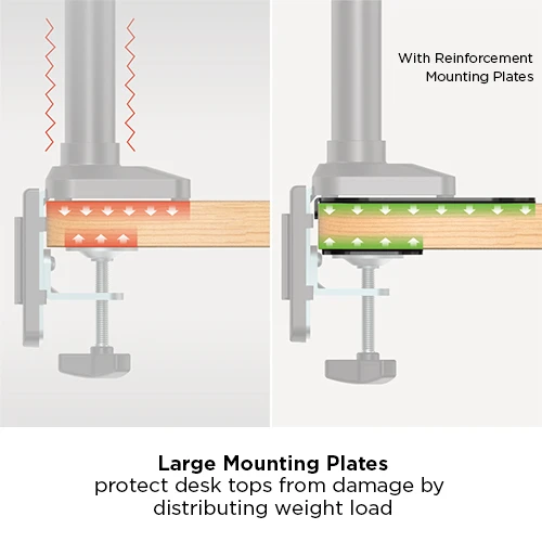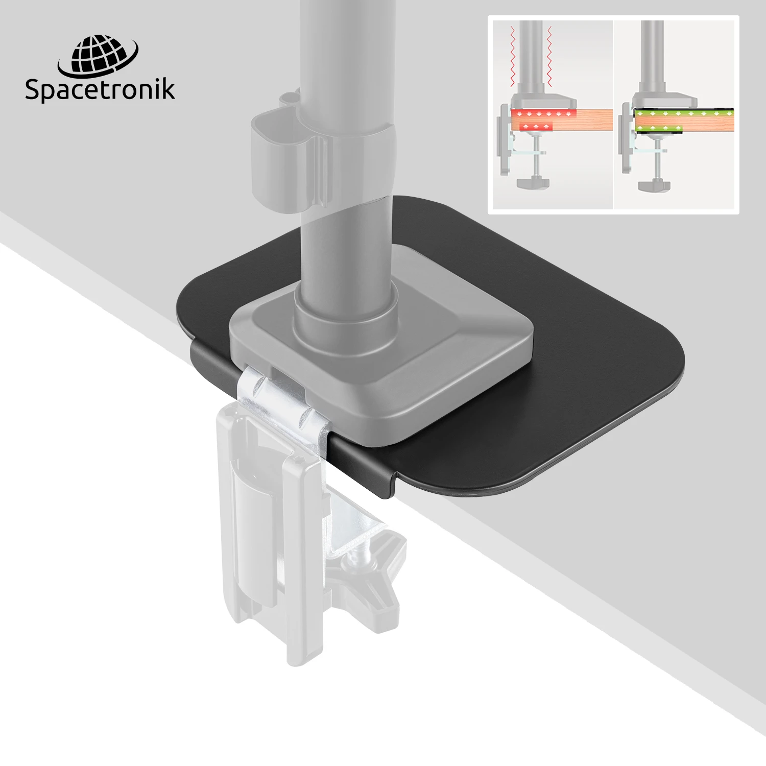 SPA-010 to idealne rozwiązanie dla osób, które mają problem z niestabilnym uchwytem lub obawiają się o uszkodzenie lub zarysowanie blatu. Podkładka równomiernie rozkłada ciężar uchwytu wraz ze sprzętem oraz posiada silikonowe podbicie, dzięki któremu uchwyt stoi stabilnie, a blat nie jest narażony na żadne uszkodzenia. Możliwe jest zamontowanie podkładki zarówno do uchwytu na zacisk, jak i do montażu przelotowego dzięki otworowi na śrubę.