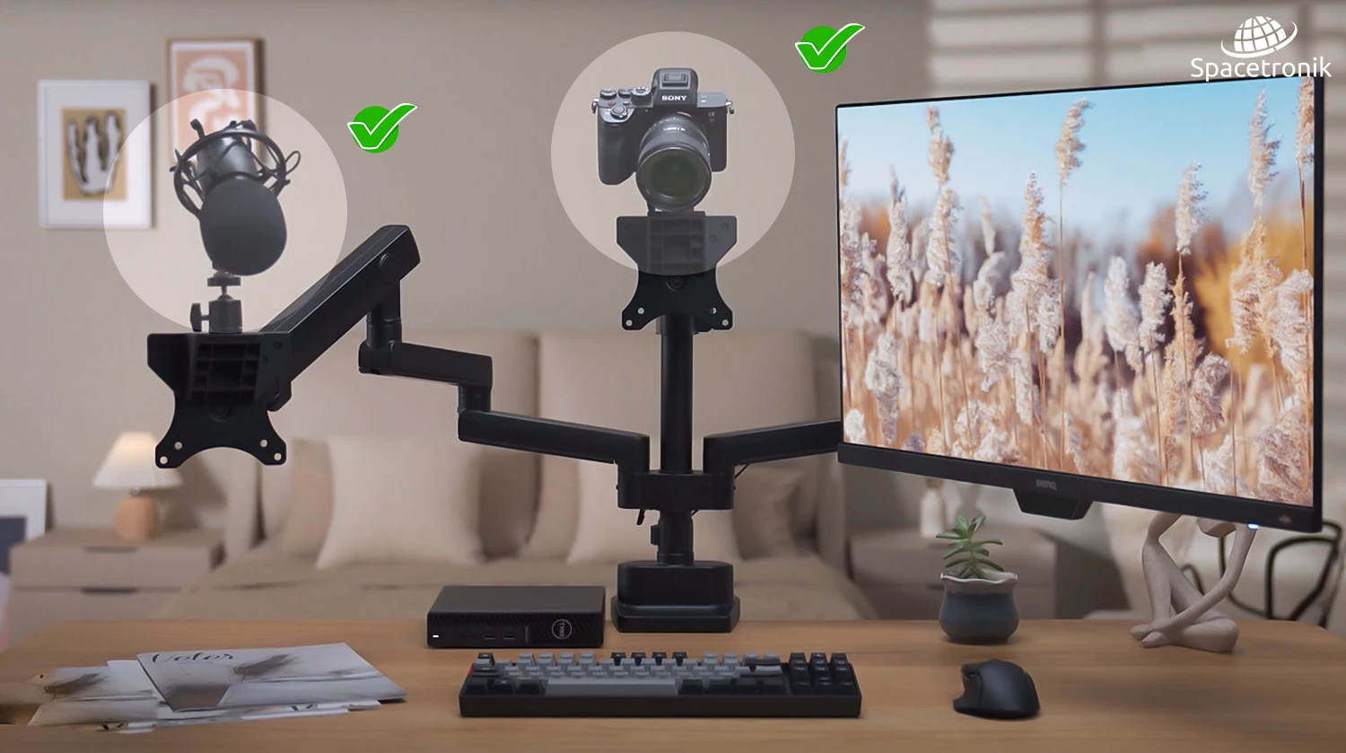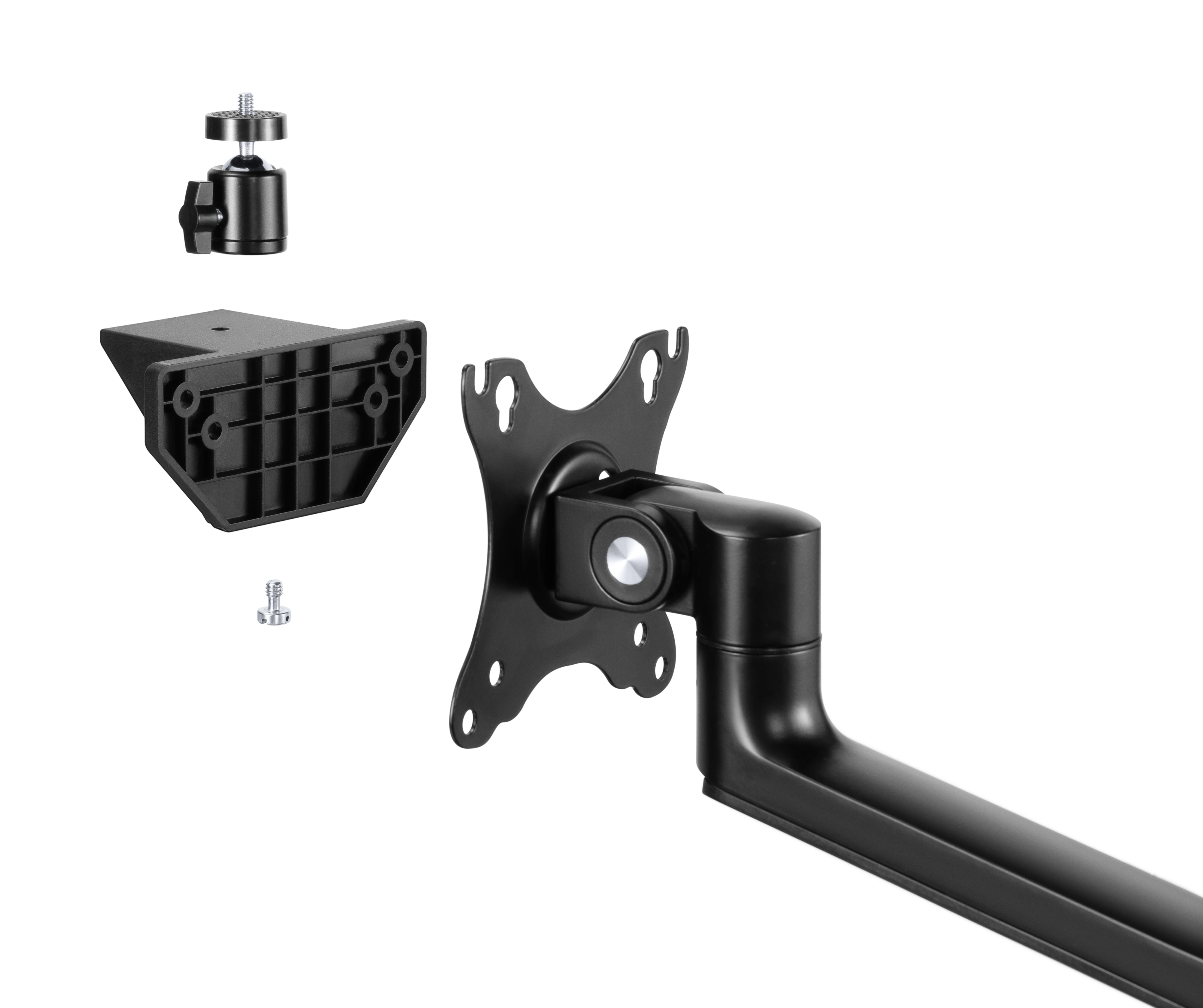 Uchwyt na monitor, laptop, kamerę, mikrofon służy do zapewnienia wygody użytkownikom komputerów poprzez zwiększenie elastyczności w ustawieniu ekranów i sprzętów. Jest to szczególnie przydatne, gdy trzeba dostosować ich pozycję do indywidualnych potrzeb lub stanowiska pracy.