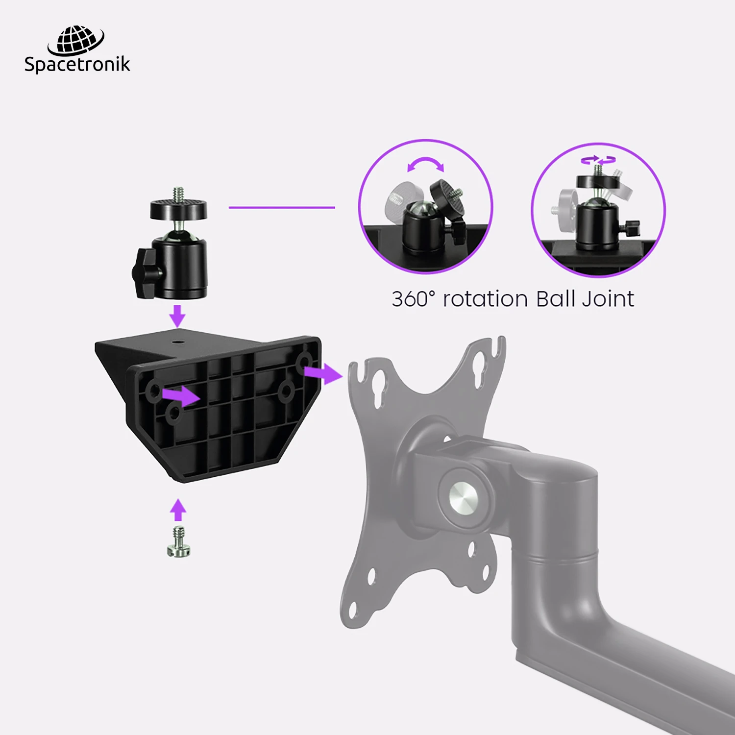 SPP-020 oferuje innowacyjne rozwiązanie do montażu urządzeń takich jak mikrofon, lampy, kamery i inne akcesoria do uchwytu w standardzie VESA. Adapter został zaprojektowany tak, aby pasował do każdego uchwytu monitora VESA z otworami montażowymi 75x75 i 100x100mm.