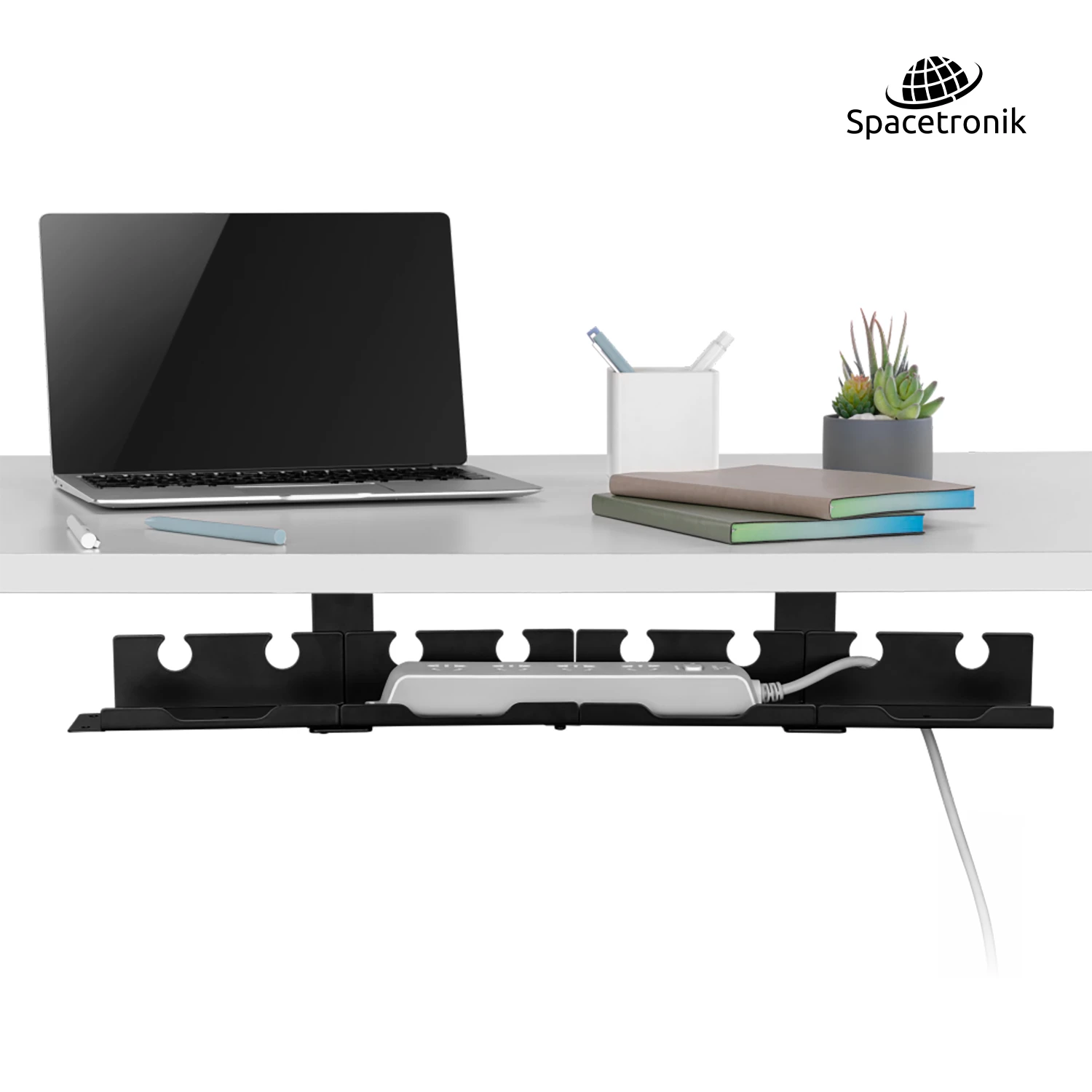 Zarówno nowe możliwości, jakie otwiera przed nami praca zdalna, jak i ciągle rozwijająca się forma rozrywki elektronicznej sprawia, że spędzamy coraz więcej czasu przy naszych biurkach, przed ekranami komputerów. Z uwagi na to, by zapewnić sobie komfort psychiczny, warto byśmy zadbali o porządek i wygodę przy naszym stanowisku. Jednym ze sposobów na to, może być trzymanie kabli pod biurkiem w sposób uporządkowany, z czym pomóc Ci może modułowy uchwyt na listwę zasilającą pod biurko SPK-519B. Dzięki jego pomocy zachowasz swoje przewody w porządku co przełoży się na Twoją wygodę z uwagi na zarówno bodźce wizualne jak i na zyskanie większej przestrzeni pod biurkiem co poskutkuje tym, że wygodniej ułożysz swoje nogi. To wszystko przełożyć się może pozytywnie na stan Twojego samopoczucia i tym samym Twoją produktywność.