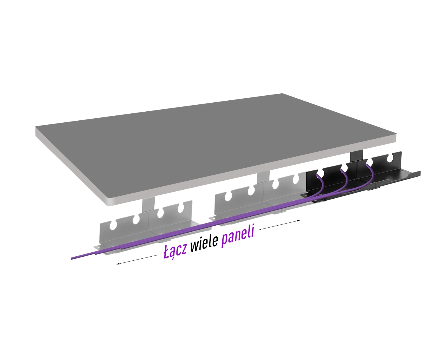 Uchwyt na listwę zasilającą pod biurko SP-519B ma budowę modułową. Oznacza, to, że składa się on z osobnych części, które możesz dowolnie ze sobą łączyć. Pozwoli Ci to na dostosowanie maskownicy na listwę do swoich potrzeb i zajmie ona tylko tyle miejsca, ile potrzebujesz. Co więcej, dzięki zastosowaniu takiego rozwiązania organizer do kabli SPK-519B jest uniwersalny i zmieszczą się na nim różne rodzaje listew zasilających. Dodatkowo w każdym module zaimplementowane zostały otwory na kable, dzięki czemu każdy kabel będzie mógł być w osobnym otworze, co wpłynie na fakt, że kable nie będą się plątać.