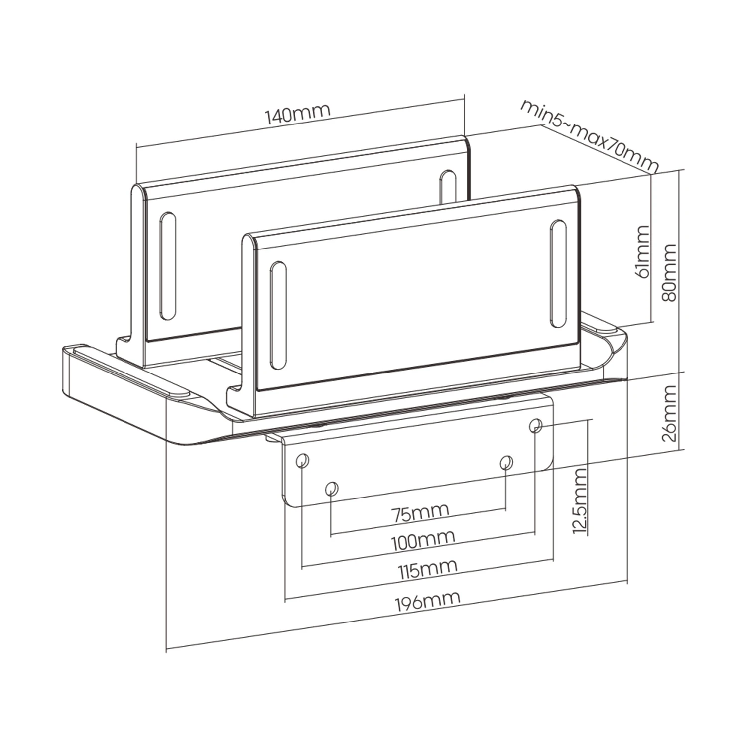 Dzięki wytrzymałej konstrukcji model SBK-110 zapewnia stabilny uchwyt dla mini komputera, tunera lub konsoli o szerokości do 70mm.