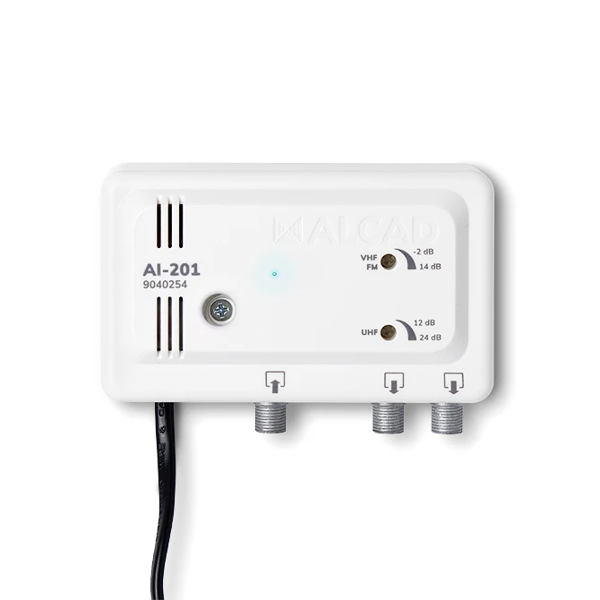 Szerokopasmowy wzmacniacz mieszkaniowy do telewizji naziemnej z wbudowanym zasilaczem. Wzmacnia osobno pasma VHF i UHF i ma niezależną kontrolę wzmocnienia dla każdego pasma. Zawiera dwa wyjścia do dystrybucji do dwóch lub więcej telewizorów. Przeznaczony do rozbudowy instalacji naziemnej telewizji analogowej i cyfrowej w mieszkaniu lub domu. Wzmacnia sygnał telewizyjny, dzięki czemu można wykonać dystrybucję z kilkoma nowymi gniazdami z sygnału jednego gniazda telewizyjnego lub z kabla koncentrycznego wchodzącego do domu. Poziomy można łatwo regulować za pomocą dwóch regulatorów wzmocnienia.