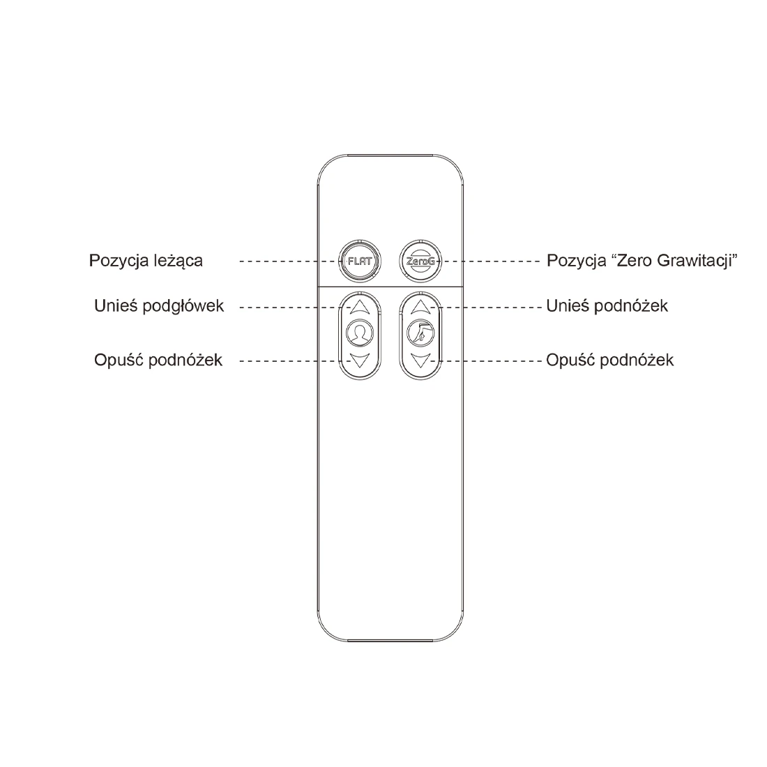 - Bezprzewodowy pilot- łóżkiem można sterować wygodnym pilotem na baterie