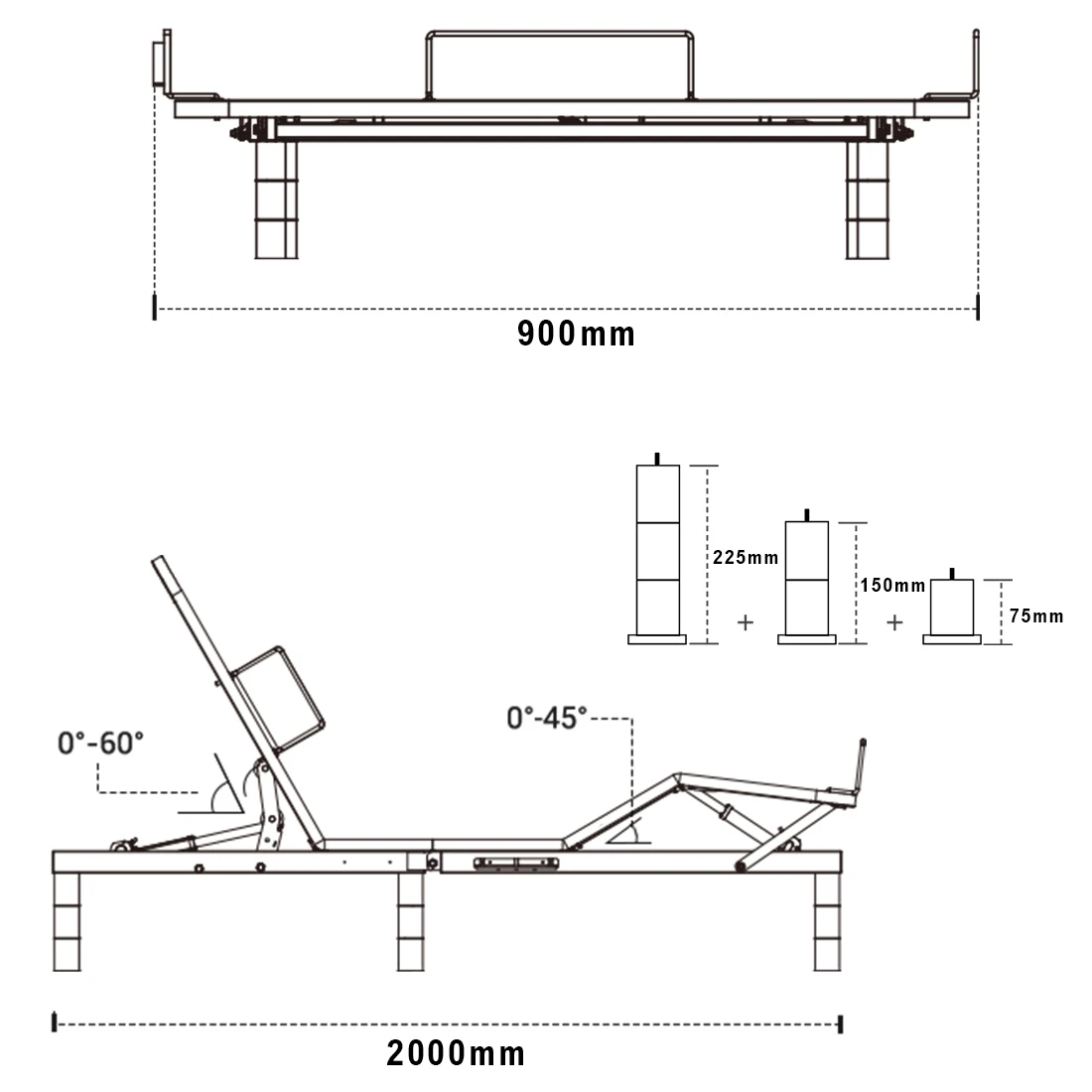 Regulowane łóżko Spacetronik może być używane jako samodzielny system nośny lub zostać zainstalowane do standardowej ramy łóżka bez stelaża z listew. Nowoczesne łóżko elektryczne Dozee zostało wyposażone w 6 modułowych nóg, które pozwalają uzyskać trzy różne wysokości łóżka - 7,5cm, 15cm lub 22,5cm. Przestrzeń pod łóżkiem, zwłaszcza w najwyższym możliwym ustawieniu może służyć jako schowek.