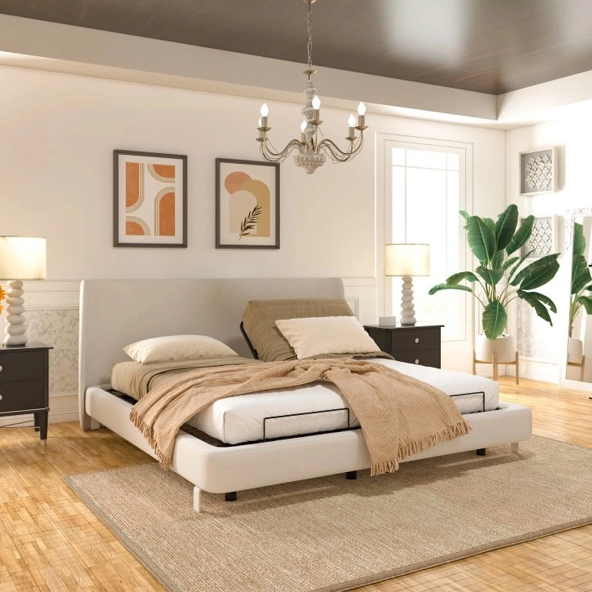 Połącz ze sobą dwa łóżka elektryczne 200x90, aby utworzyć łóżko podwójne. Dzięki takiej konfiguracji Ty i Twój partner możecie wybrać i ustawić materac w dowolny sposób i w dowolnym momencie. Twój współmałżonek kładzie się wcześnie spać, a Ty zawsze do późnych godzin siedzisz nad książką? Dostosujcie zagłówek odpowiednio dla każdego z Was, nie przeszkadzając sobie nawzajem.