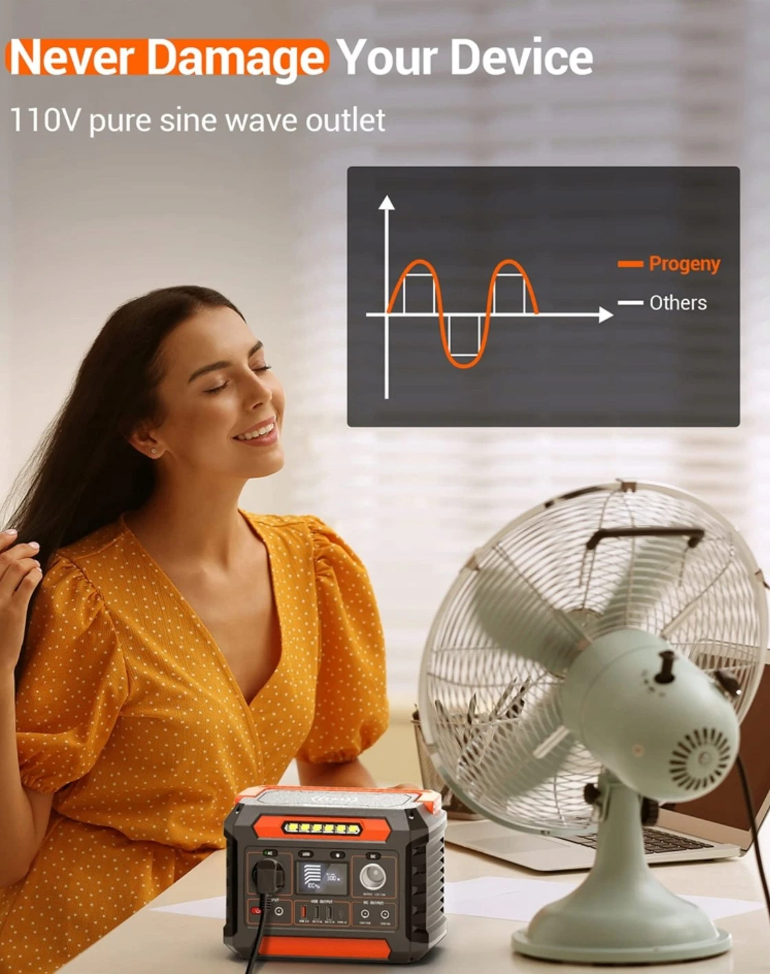 Przenośny generator P66 ma czyste sinusoidalne gniazdko prądu przemiennego, takie jak mini lodówka, pompka powietrza i telewizor; Wyposażony w 260-watową baterię litowo-jonową, zapewnia wystarczającą ilość prądu do zasilania niezbędnych urządzeń podczas podróży, biwakowania, wędkowania, polowania, przerwy w dostawie prądu itp