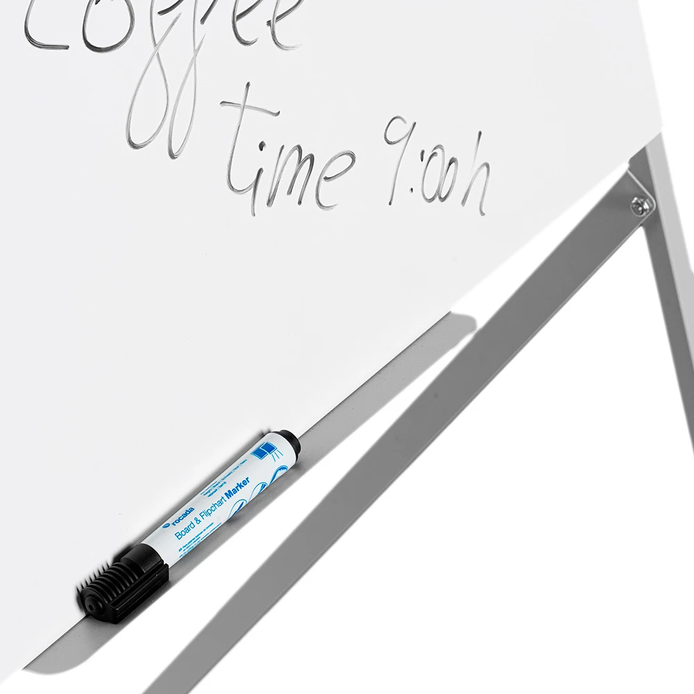 Mobilny stelaż z tablicą magnetyczną suchościeralną, składany. Pozwoli Ci na wygodny transport tablicy, przedstawianie notatek, obracanie tablicy i zabranie jej gdziekolwiek chcesz.