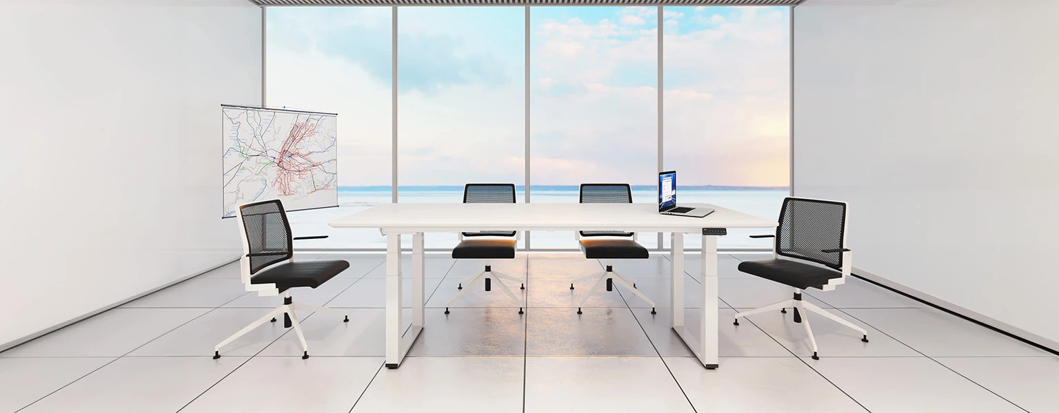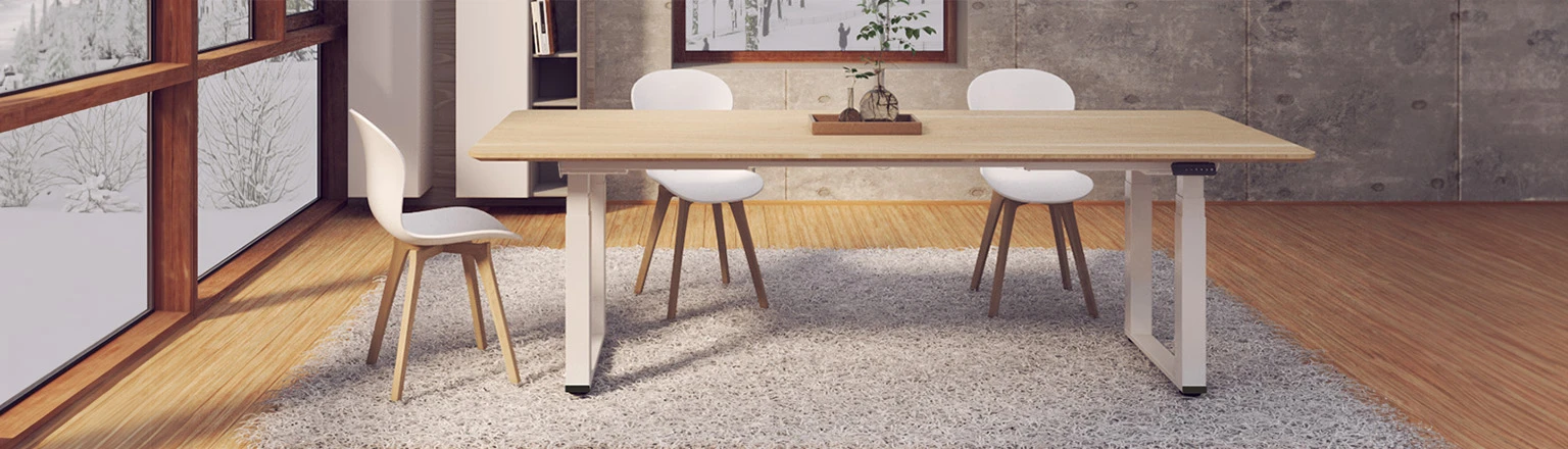 Elektryczny, metalowy stelaż, który pozwala stworzyć stół do jadalni, biura lub sali konferencyjnej