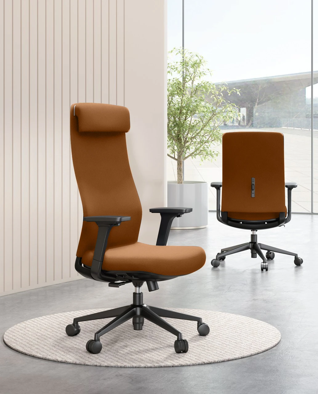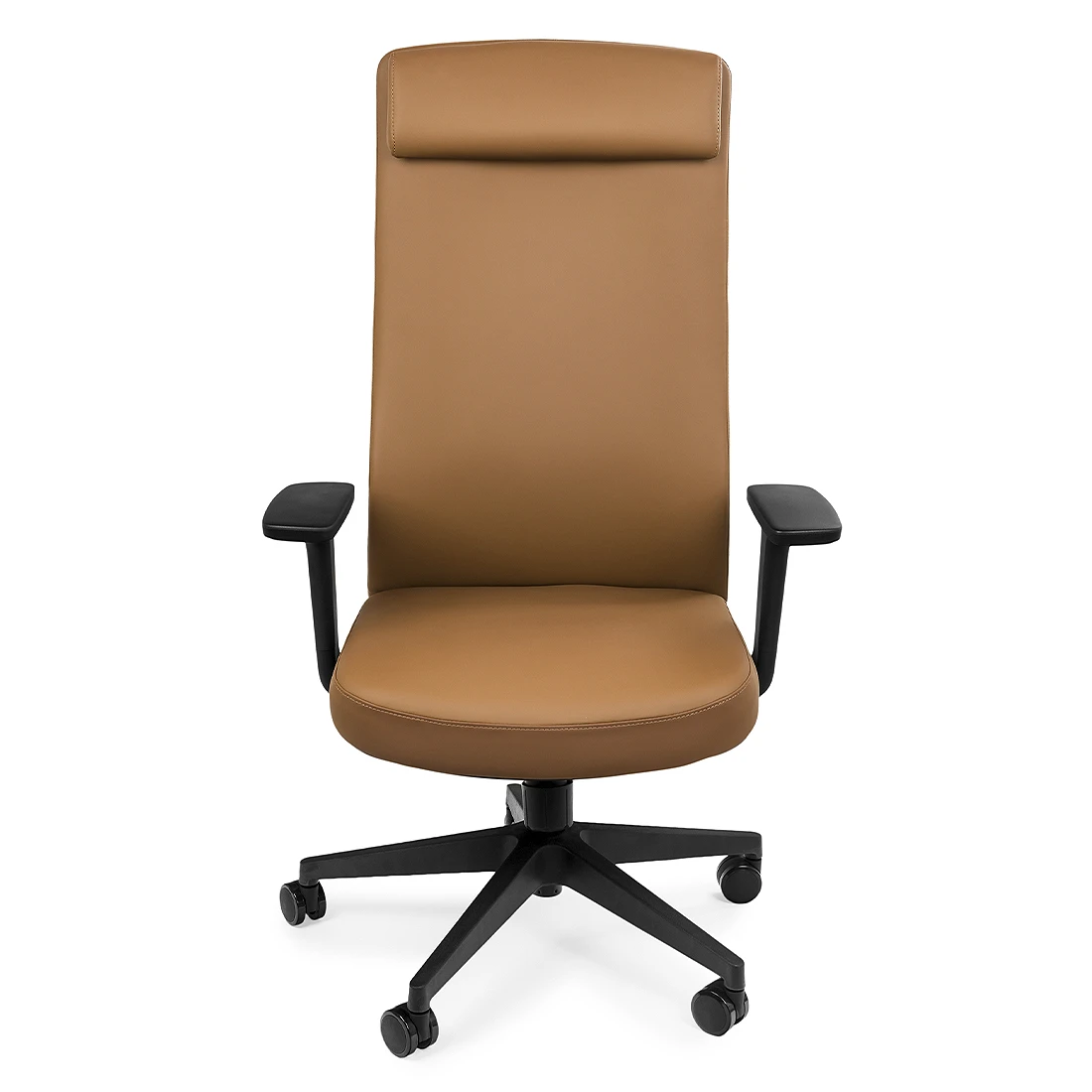 Wysoka jakość elementów, z których został wykonany fotel do biurka, przekłada się na prestiżowy efekt wizualny. Siedzisko zostało wyściełane przyjemną tkaniną z pianką o wysokiej gęstości wewnątrz. Łokcie spoczywają na ergonomicznych podłokietnikach. Wykończenie elegancką brązową skórą PU sprawia, że jest to krzesło klasy premium, które idealnie dopasuje się do biznesowego stylu. Modny i ergonomiczny kształt fotela biurowego zapewni wygodne siedzenie nawet przez wiele godzin.