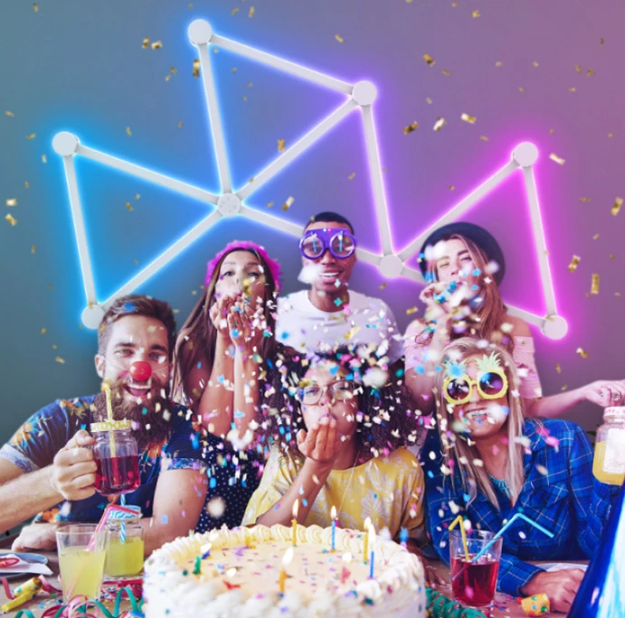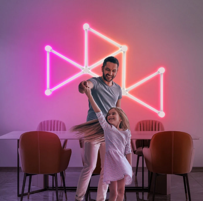 Połącz wszystkie elementy, przyklej na ścianie za pomocą dołączonych taśm 3M EVA, podłącz do zasilania i ciesz się wielobarwnym systemem oświetlenia na ścianę. Nie potrzebujesz żadnych narzędzi. Zmontuj segmenty lampy na ścianę Spacetronik w dowolnej kombinacji i na dowolnej długości i stwórz niesamowite oświetlenie i niepowtarzalny klimat.