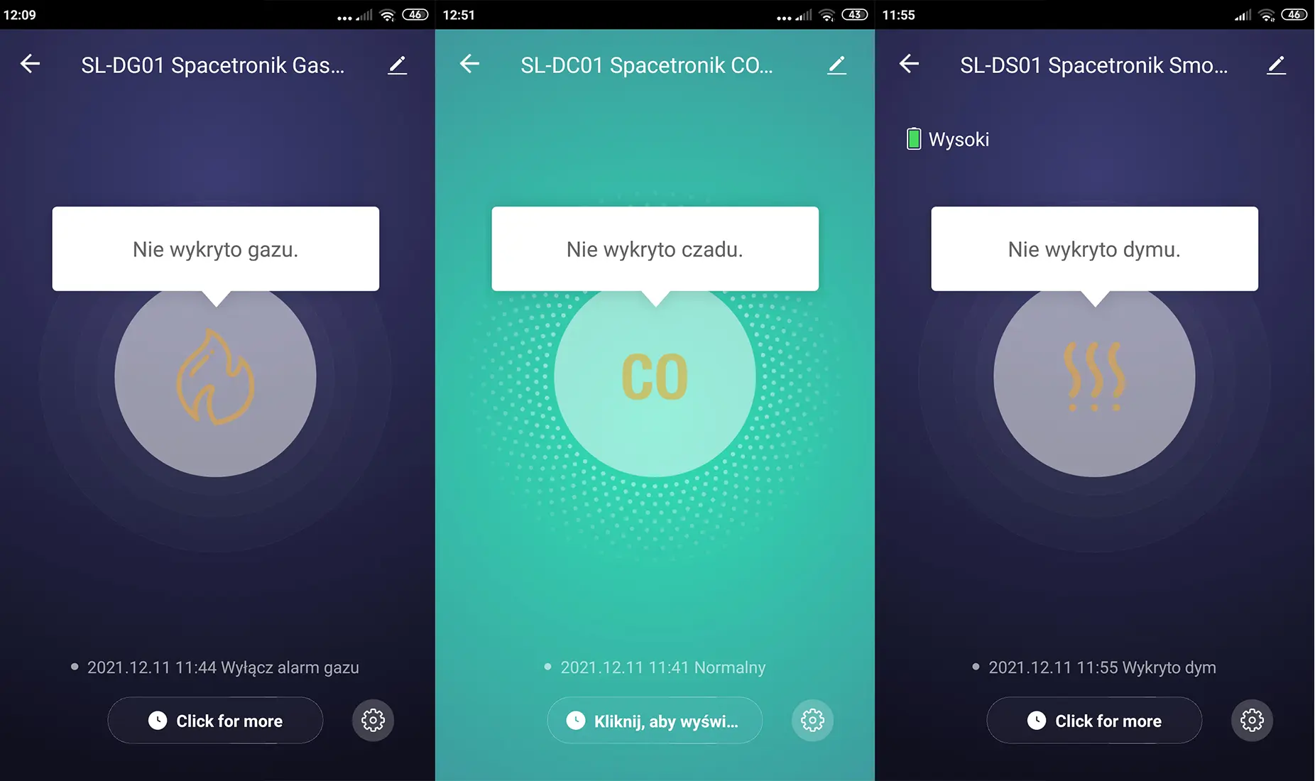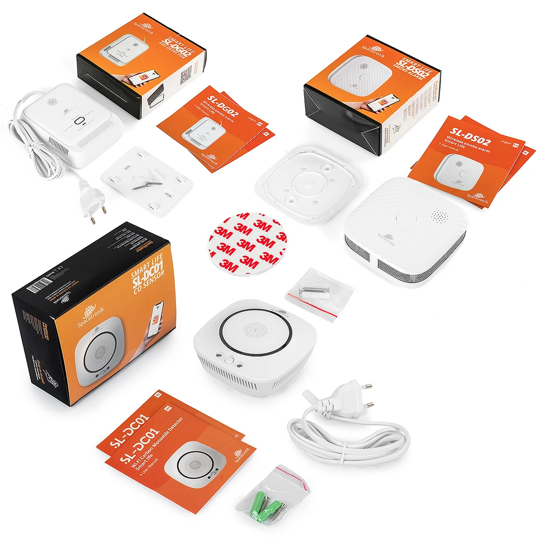Zestaw inteligentnych czujników dymu, gazu i czadu 3 szt. WiFi Tuya Spacetronik SL-DZ-CDG02
