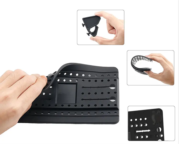 Mata antypoślizgowa, która idealnie dostosowuje się do deski rozdzielczej i zapewnia idealną przyczepność dla Twojego smartfona. Do montażu niepotrzebne są żadne dodatkowe kleje. Uchwyt jest niezwykle łatwy w użyciu, dzięki czemu możemy wykorzystać go praktycznie wszędzie – w domu, samochodzie, biurze, na łodzi, jachcie, w samolocie…