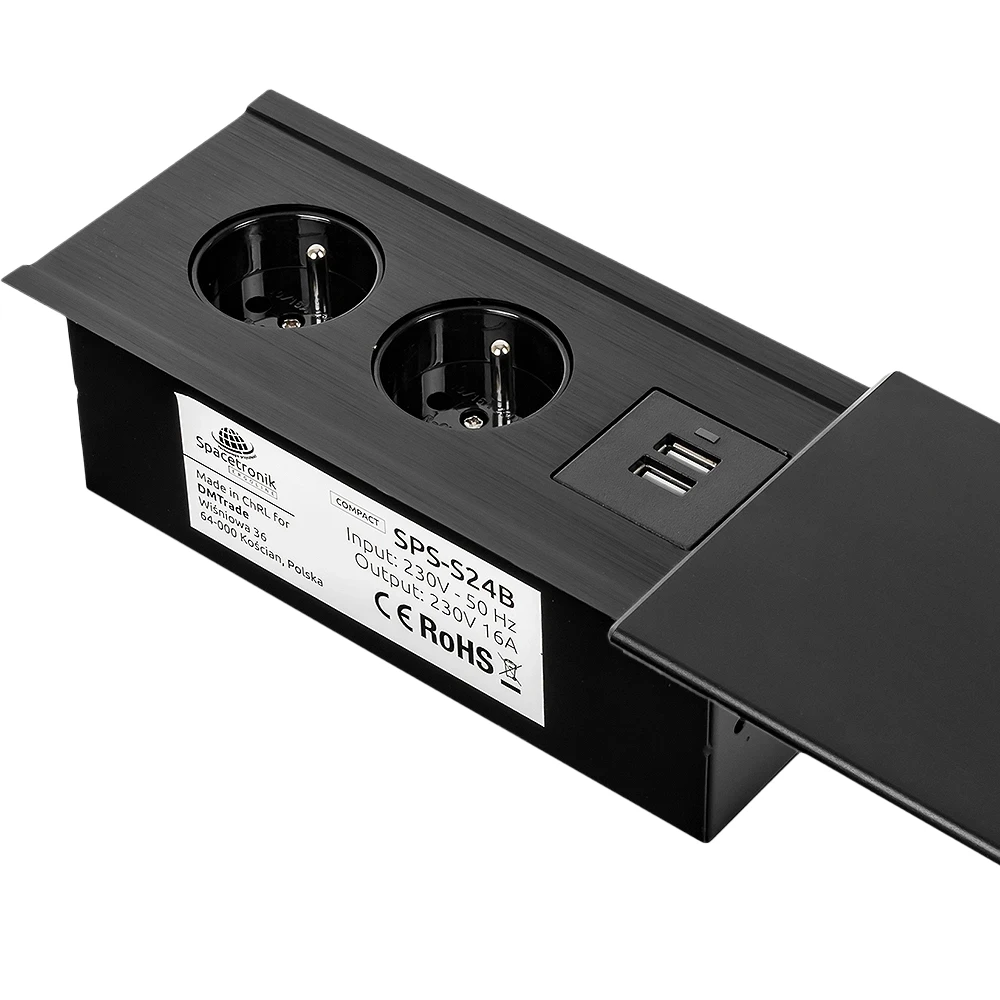 Otwierane Gniazdo Blatowe Spacetronik SPS-S24B COMPACT Czarne – Funkcjonalność i Elegancja