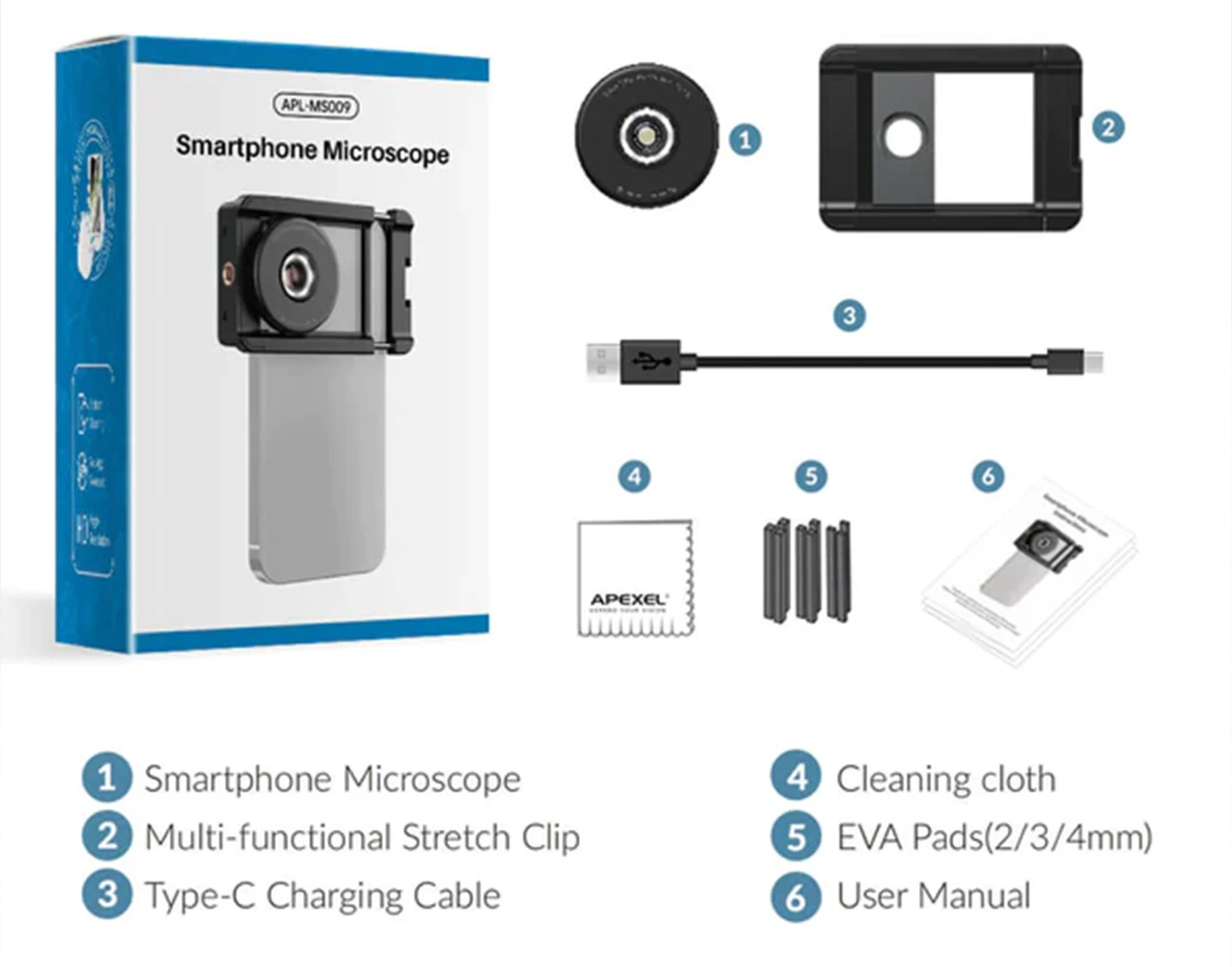 Mikroskop do telefonu z powiększeniem 100x z lampą LED APL-MS009