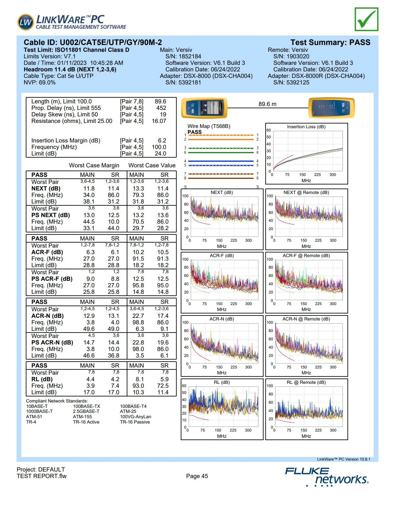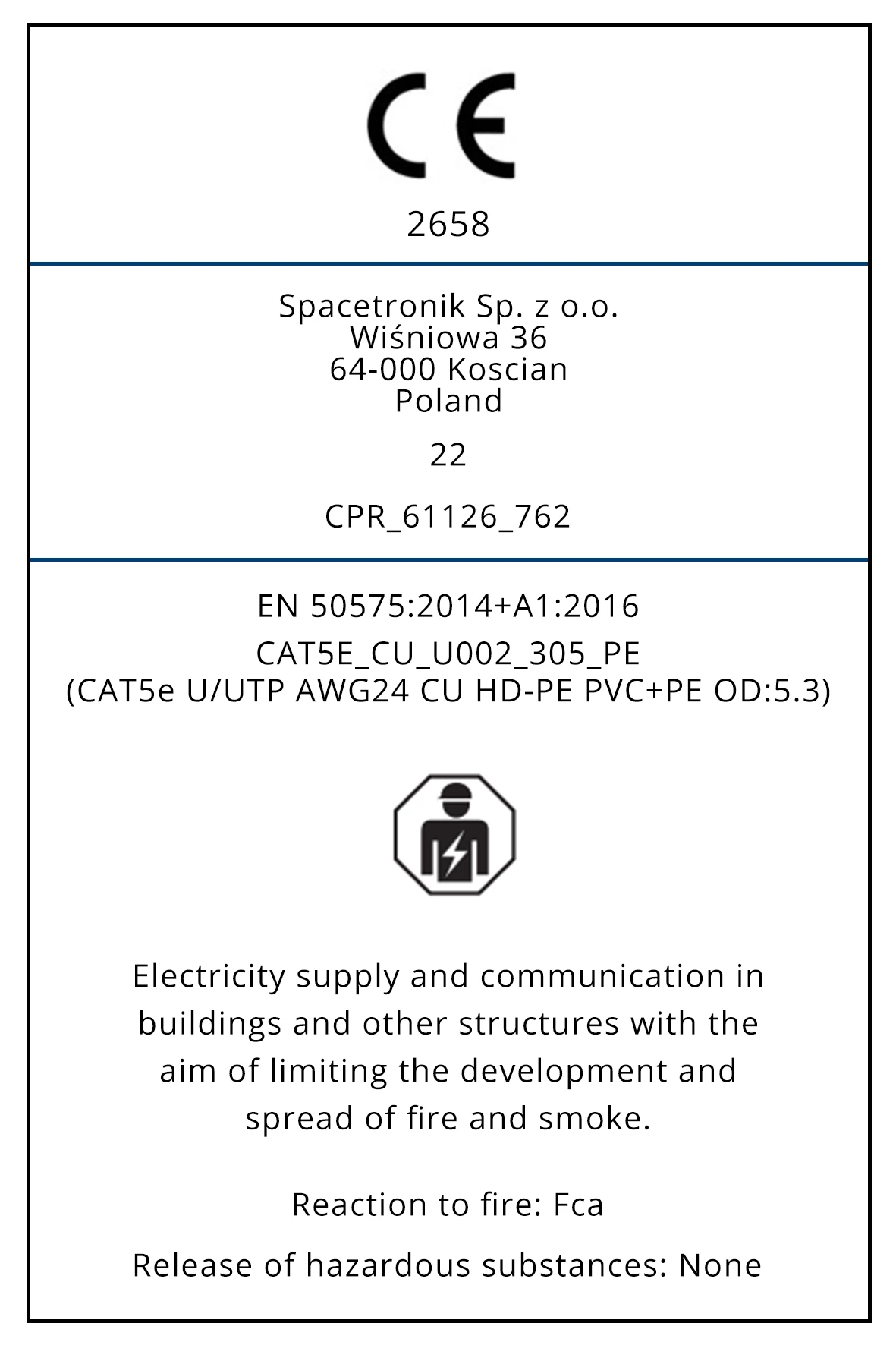 Wszystkie skrętki LAN marki Spacetronik zostały przetestowane za pomocą Fluke na dużych odległościach. Dzięki temu możemy zagwarantować wysoką jakość i niezawodność. Certyfikacja ta jest standardem, według której mierzy się wiele instalacji. Można również wykorzystywać tego typu testów w procesie jakości i rozwoju produktu, co miało miejsce również w tym przypadku. Kable spełniają również normę ISO11801.