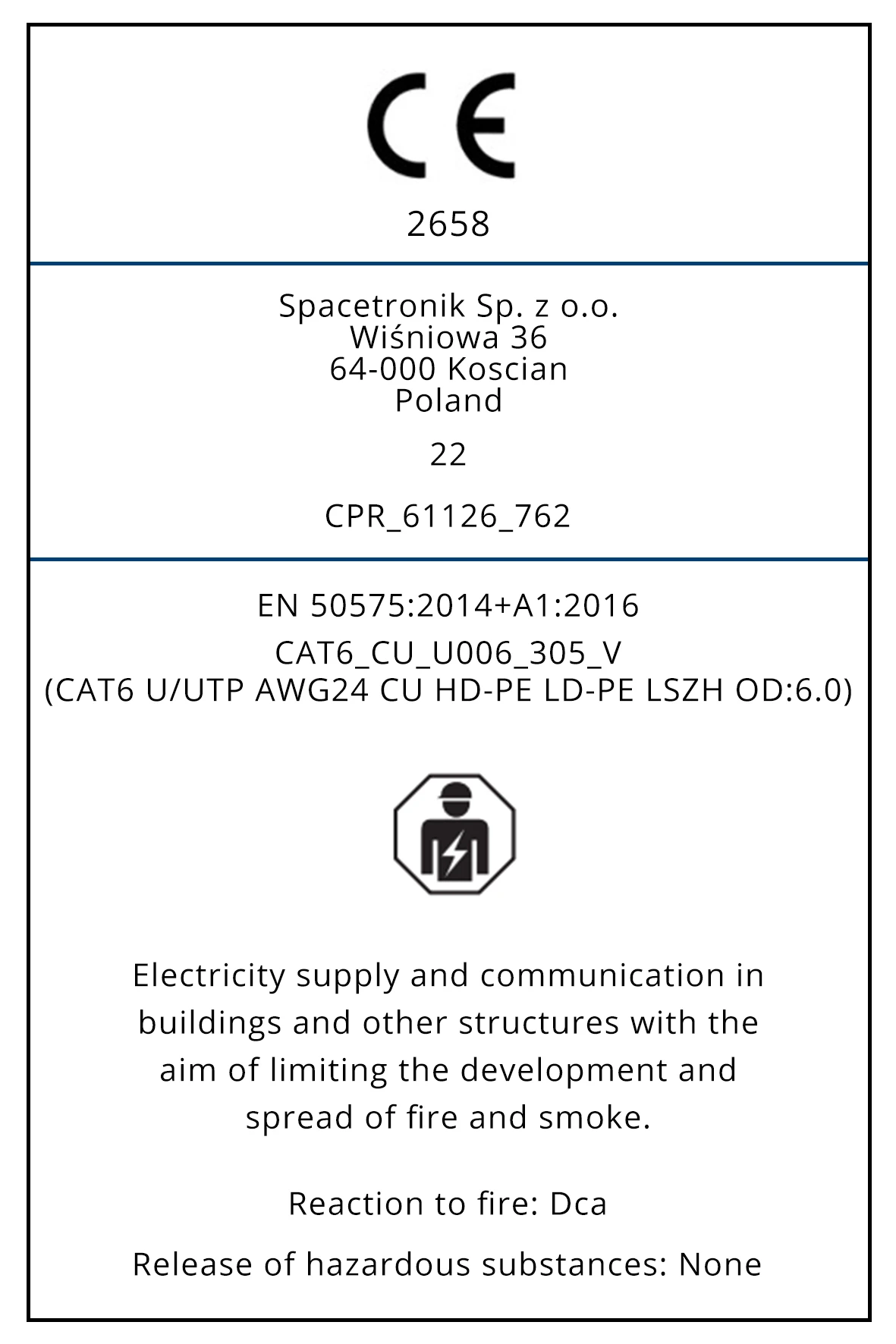 Skrętka miedziana LAN Spacetronik to wysokiej klasy przewód wykonany z najwyżej jakości surowców. Kabel sieciowy instalacyjny zapewnia przesył sygnału 1GBit Ethernet przy osiągnięciu częstotliwości transmisji do 250MHz. Produkt jest bardzo często wybierany przez profesjonalnych instalatorów ze względu na niezawodność oraz ponadprzeciętną wytrzymałość. Przewód sprawdzi się w każdych instalacjach sieciowych. Kabel jest wyjątkowo elastyczny i odporny na zginanie, a jego układanie jest łatwe i przyjemne.