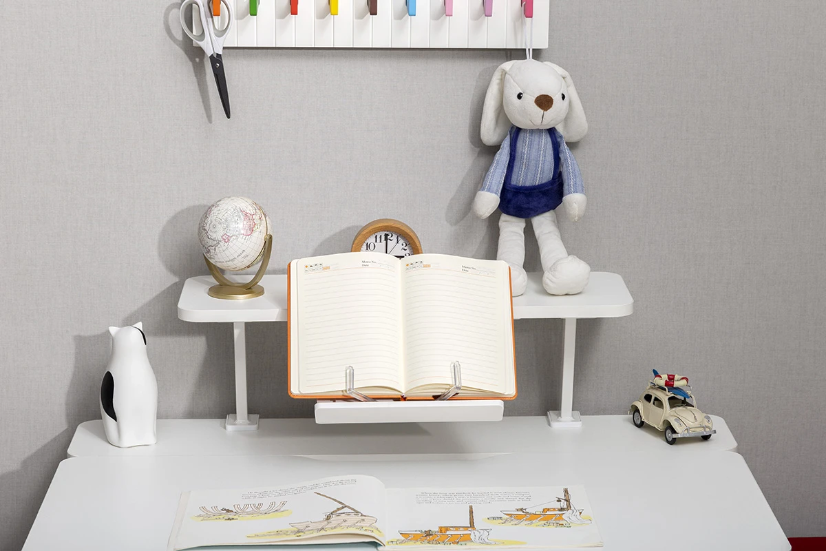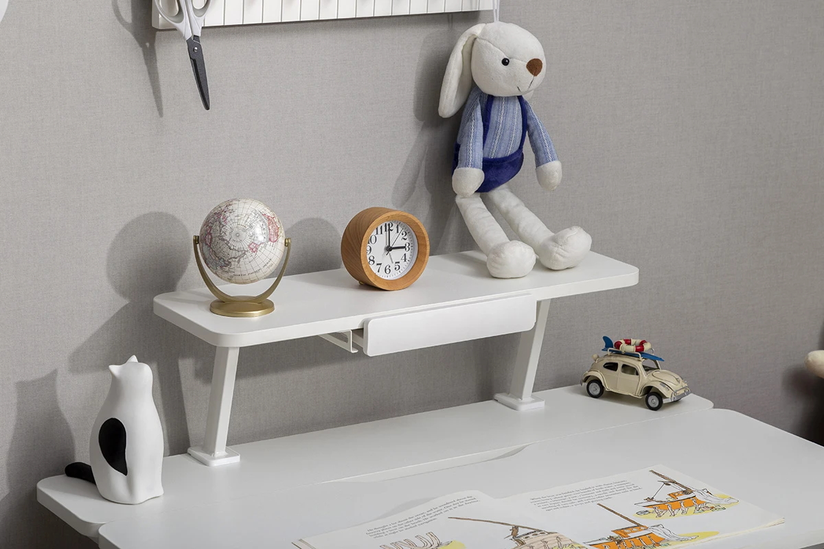Zyskaj więcej przestrzeni na biurku, dokładając opcjonalną półkę na biurko SPB-112WW kompatybilną m.in. dziecięcym biurkiem regulowanym elektrycznie Spacetronik XD SPE-X102.