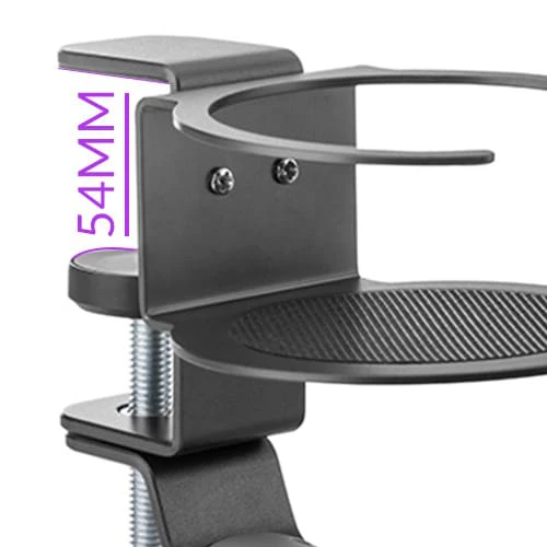 Dzięki zastosowaniu uniwersalnego zacisku jako formy montażu możesz w sposób kompletnie nieinwazyjny przymocować uchwyt na kubek i słuchawki SPB-020B tam, gdzie chcesz i w razie potrzeby bez problemu przenieść go w inne miejsce. Montaż uchwytu nie wymaga ani wiercenia, czyli nie uszkodzisz swojego biurka, ani korzystania z kleju, dzięki czemu bez problemu będziesz mógł go zdemontować. Zacisk wieszaka na słuchawki i kubek SPB-020B ma kontrolowaną wysokość, dlatego będziesz w stanie przymocować go do każdej krawędzi o grubości do 54mm.