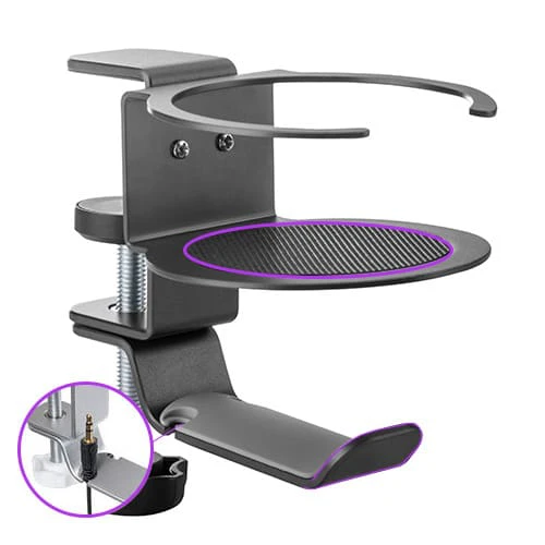 W aktualnych czasach spędzamy dużo czasu przed monitorem komputera. Niezależnie czy oddajemy się wirtualnej rozrywce, czy korzystamy z możliwości home office, nasze biurko staje się przestrzenią, w której przebywamy przez znaczącą część dnia. Dlatego ważne dla naszego samopoczucia jest to, by powierzchnia biurka, przy którym się znajdujemy, była dobrze zorganizowana. Do osiągnięcia tego celu przydać Ci się może uchwyt podbiurkowy na słuchawki i kubek SPB-020B. Dzięki niemu zyskasz dodatkową przestrzeń na biurku z uwagi, że słuchawki i kubek nie będą się na nim znajdowały, a dzięki uchwytowi na kabel łatwiej będzie Ci zachować porządek przy stanowisku pracy.
