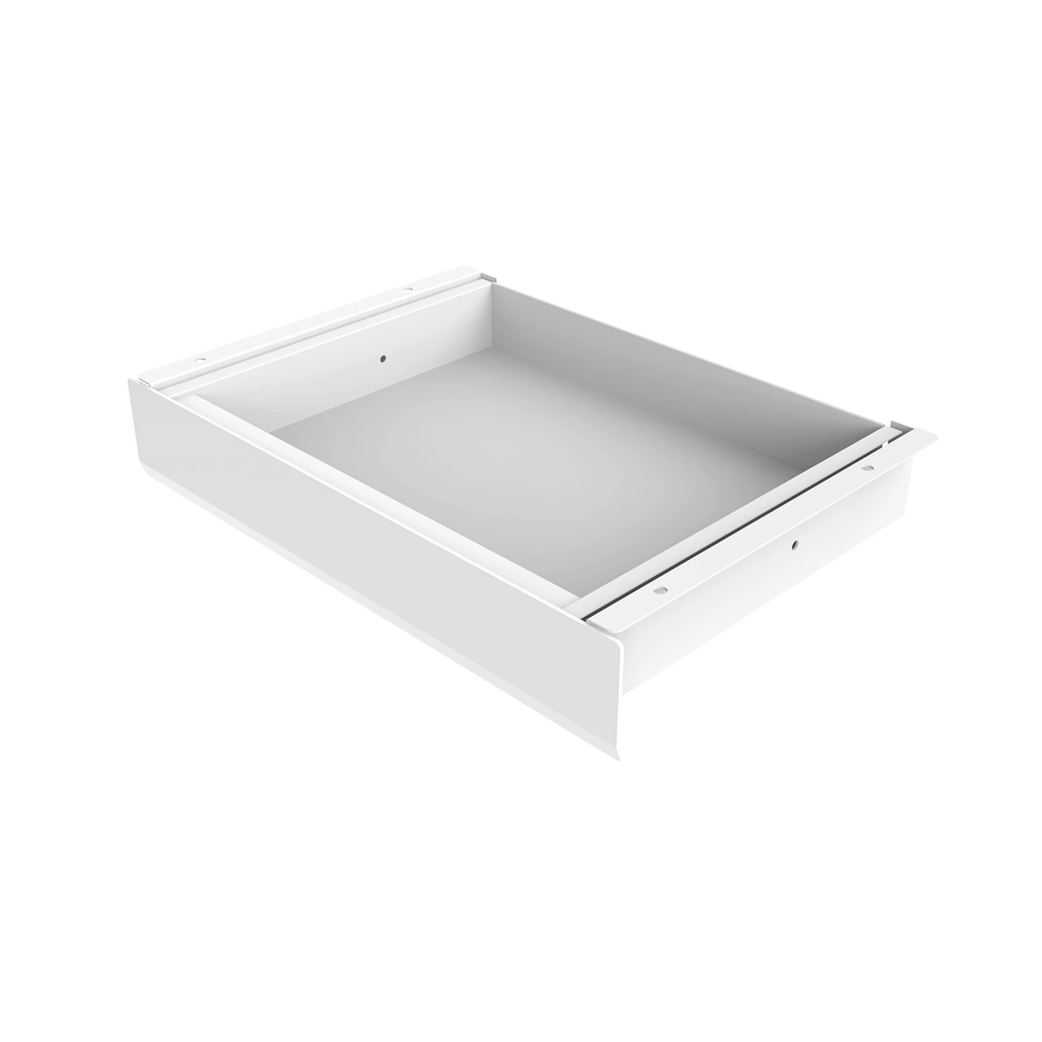 Biała powłoka nadaje szufladzie prosty i minimalistyczny wygląd. Ta szuflada podbiurkowa Spacetronik do przechowywania jest montowana pod blatem biurka, wraz z nim podnosi się i opuszcza, gdy dostosowujesz wysokość, dzięki czemu Twoje rzeczy są zawsze w zasięgu ręki. Smukły trzycalowy profil szuflady sprawia, że nie zajmie ona cennego miejsca na nogi, pozostawiając kolanom dużo miejsca.