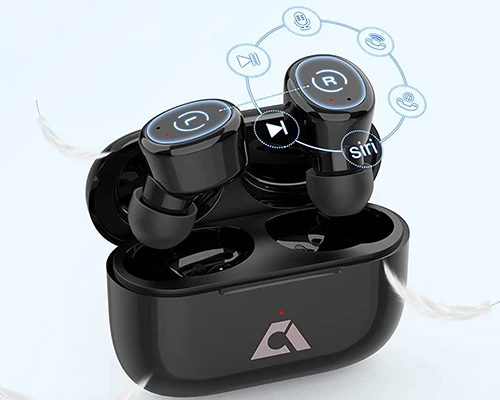 Bezprzewodowe słuchawki douszne wykorzystujące łączność Bluetooth 5.0. Pozwalają nawet na 30 godzin odtwarzania.