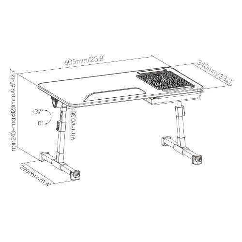 Zakres pochyłu blatu: 0-37°