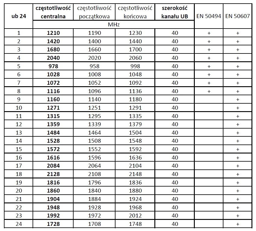 - Pasmo wyjściowe: 950-1950 MHz/1100-2150 MHz