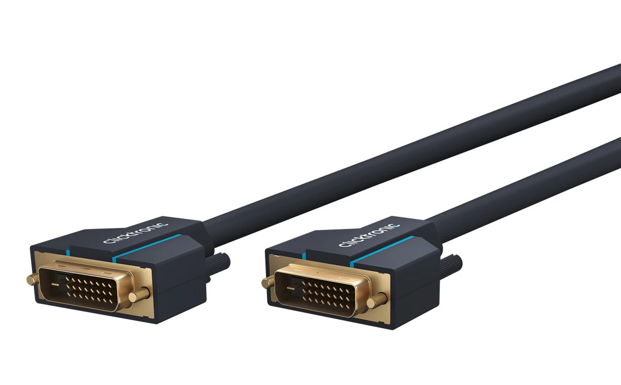 Wysokiej jakości, gruby, solidny przewód DVI/DVI gwarantujący czystą transmisję danych bez zniekształceń dzięki podwójnemu ekranowaniu.