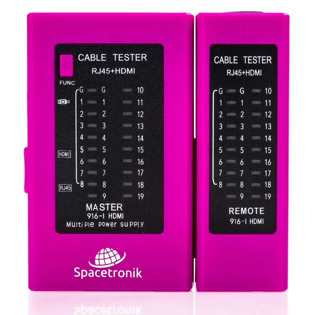 Tester HDMI oraz LAN Spacetronik pozwala na test kabli w zakresie ciągłości obwodu, przerwy, skrzyżowania par, odwrócenia par oraz zwarcia.