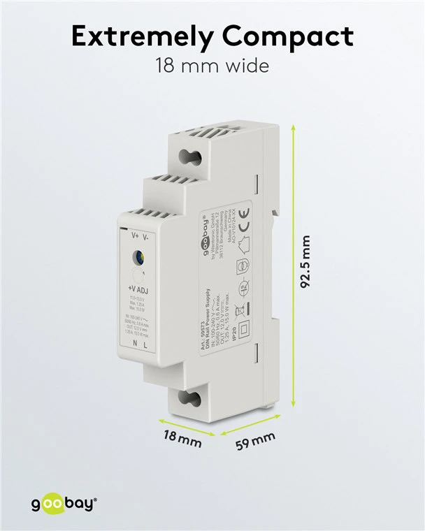 - Dzięki szerokości 18 mm jest szczególnie kompaktowy i może być szybko i łatwo zamontowany na szynie DIN z profilem top-hat za pomocą systemu click, np. w szafie sterowniczej.