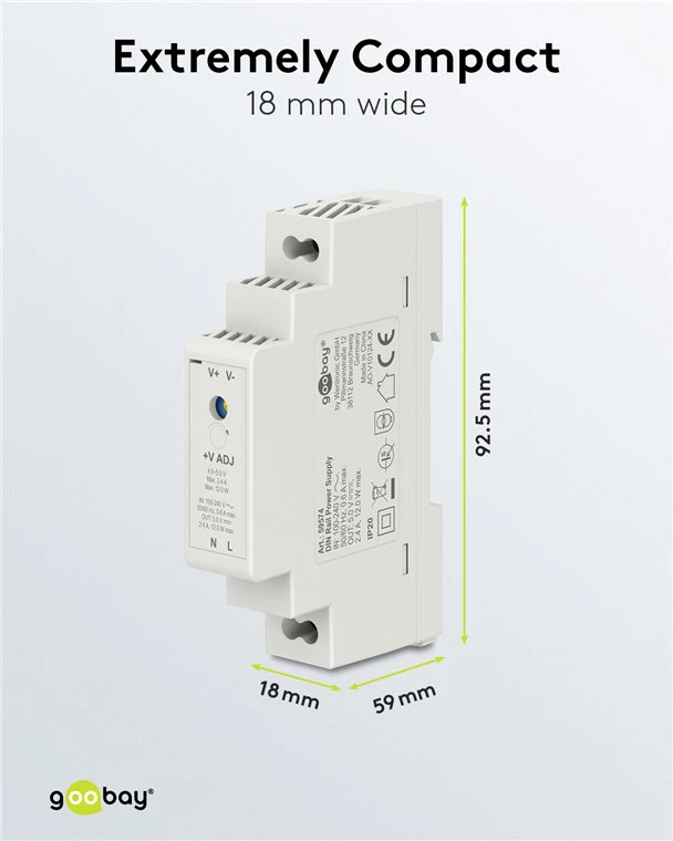 - Dzięki szerokości 18 mm jest szczególnie kompaktowy i może być szybko i łatwo zamontowany na szynie DIN z profilem top-hat za pomocą systemu click, np. w szafie sterowniczej.