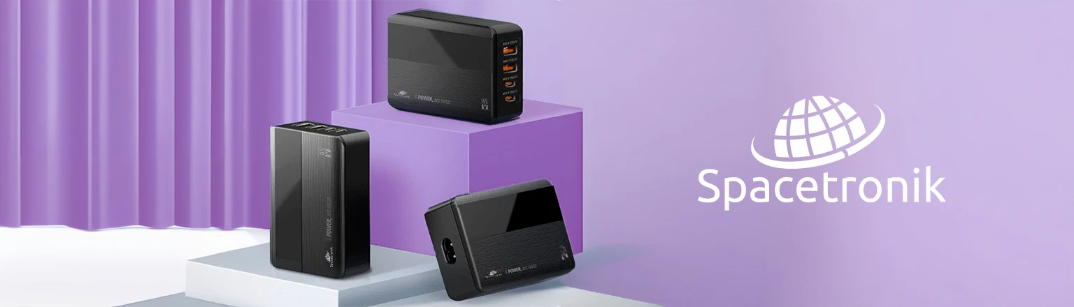 Wiele tradycyjnych ładowarek korzysta z technologii opartej na krzemie. Takie rozwiązanie przez lata było standardem w branży. Jednak wraz z rozwojem technologii, otrzymujemy nowsze, bardziej wydajne sposoby rozwiązywania codziennych problemów. W taki o to sposób powstały ładowarki GaN. Krzem, który jest stosowany w normalnych ładowarkach, został tutaj zastąpiony azotkiem galu. Sprawia to, że są one bardziej kompaktowe, lżejsze, wydajniejsze i pozwalają na pracę w wyższych temperaturach. Dokładnie taka technologia została zastosowana w ładowarce Spacetronik SR100. Przetwarza ona energię elektryczną z mniejszymi stratami w postaci ciepła. Przekłada się to na mniejsze zużycie energii i tym samym mniejsze rachunki za prąd.