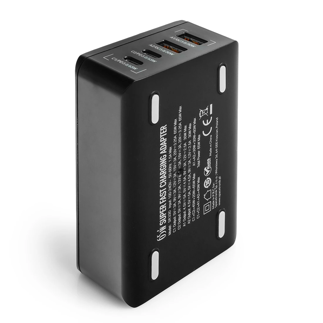 Ładowarka sieciowa 4 portowa 65 W GaN USB-C i USB Spacetronik SR100