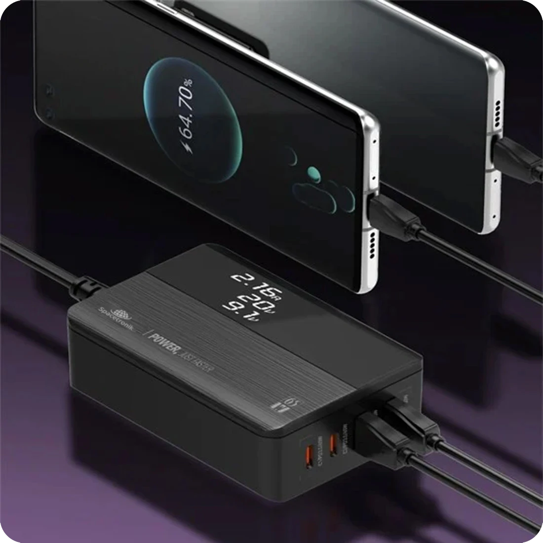 W aktualnych czasach telefony komórkowe towarzyszą nam niemal wszędzie. Jednak będą one spełniały swoją funkcję tylko wtedy, gdy będą naładowane. Stacja ładująca Spacetronik SR100 to urządzenie, które umożliwia szybkie i wygodne ładowanie akumulatorów w urządzeniach przenośnych. Takich jak smartfony, tablety czy też inne gadżety. Ładowarka jest wyposażona w 2 porty USB-C oraz 2 porty USB-A. Dzięki temu można je podłączyć do większości popularnych urządzeń. Jednocześnie można zasilać aż 4 urządzenia. Ładowarka posiada również funkcje PD i Quick Charge 3.0. Oznacza to, że urządzenie jest w stanie szybko i efektywnie naładować akumulatory o dużej pojemności. Sama ładowarka jest zasilana kablem o długości 150 cm, co pozwala umieścić ją np. na biurku.