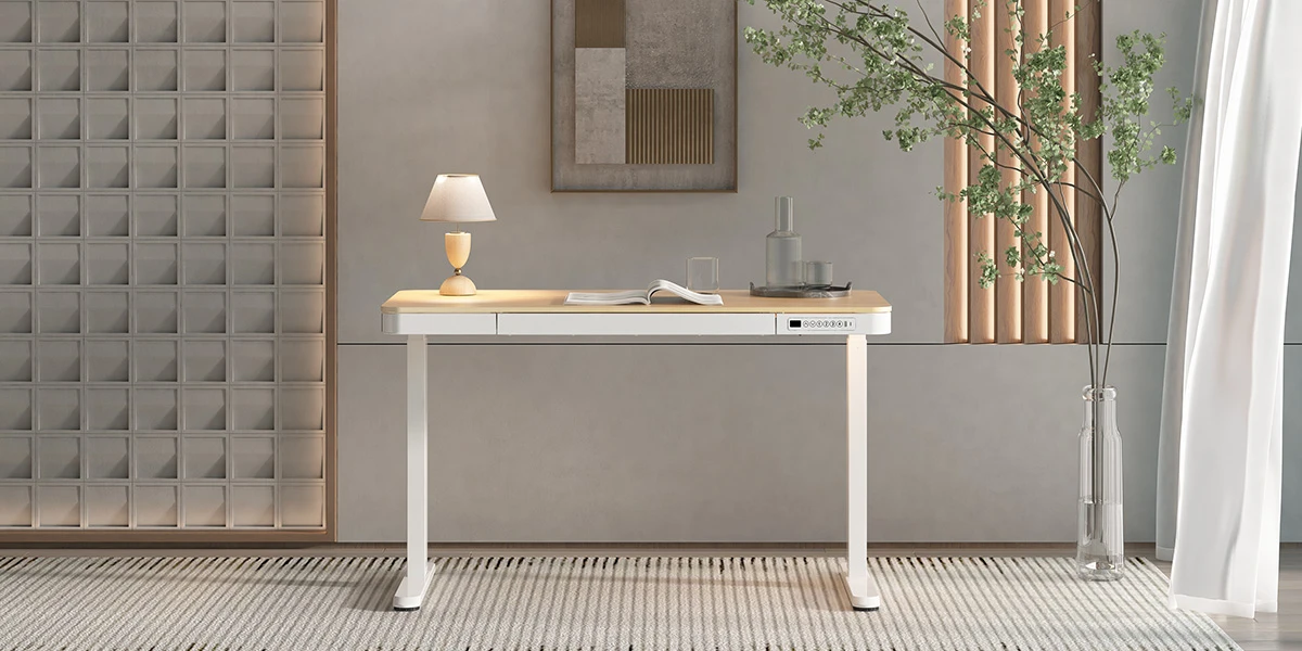 Elektryczne biurko SPE-B127WL Astrid 120x60 cm (biały stelaż + blat dąb naturalny)