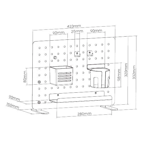 Tablice perforowaną SPB-152W możesz łączyć z innymi elementami zarówno poziomo, jak i pionowo. Dzięki temu dostosujesz ją do różnych rozmiarów biurka. Dodatkowo dołączone elementy mogą być wykorzystywane na różne sposoby. Dla przykładu haczyki mogą służyć równie dobrze jako uchwyt do telefonu, jak i na słuchawki. Dzięki otworom znajdującym się w tablicy sam możesz zadecydować, gdzie chcesz zamocować konkretne elementy zestawu. Dzięki temu ścianka jest w pełni konfigurowalna i będzie mogła spełnić Twoje oczekiwania. Co więcej, tablica jest magnetyczna. Dlatego bez problemu dasz radę również przyczepić do niej różne przedmioty za pomocą magnesów szpilkowych. Tablica perforowana SPB-152W należy więc do gatunku przedmiotów DIY (Do It Yourself – zrób to samemu). Pozwoli Ci to na wprowadzenie w życie swoich najróżniejszych pomysłów.