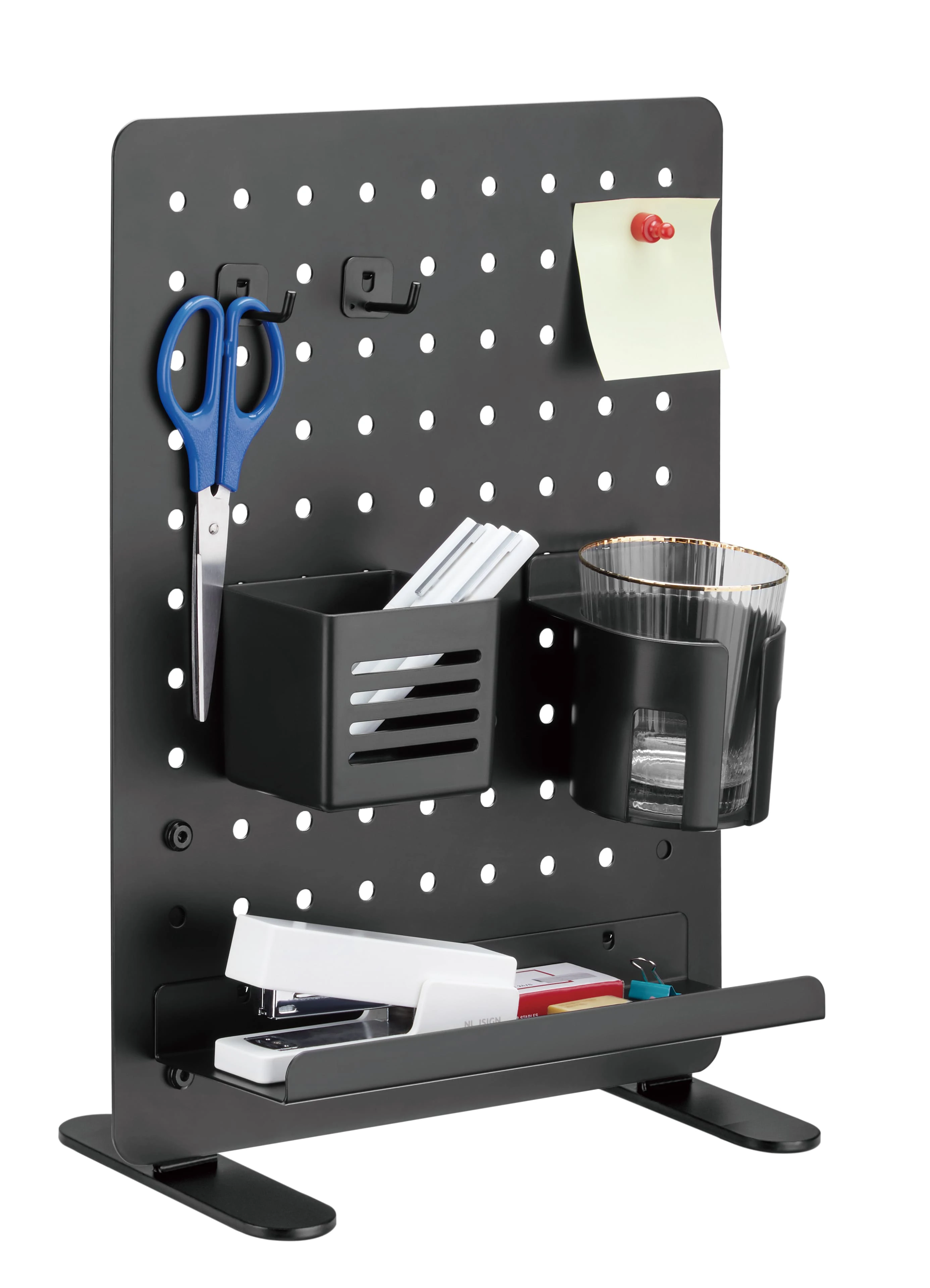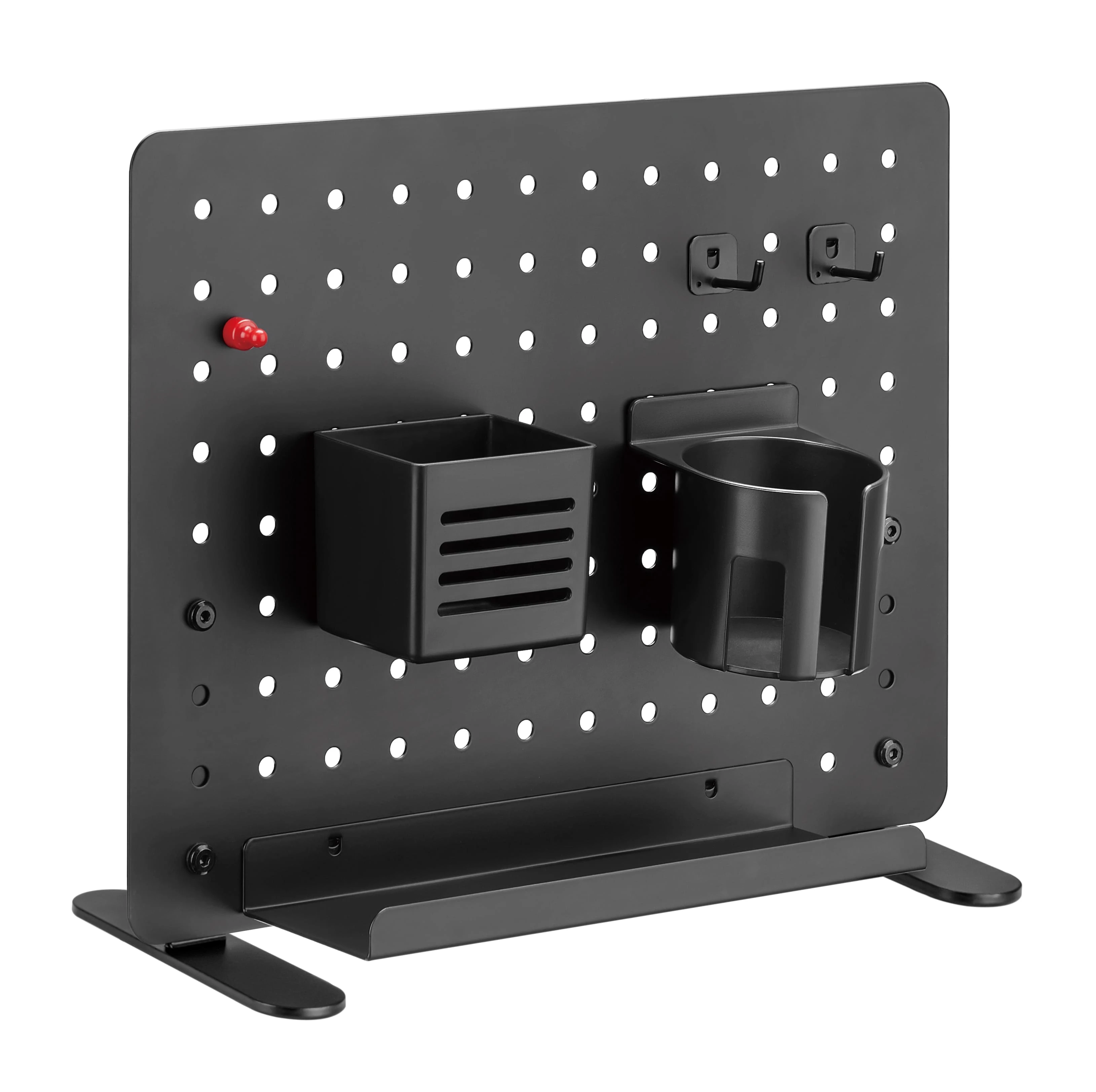 Tablica do postawienia na biurko Spacetronik Ergoline Holdee SPB-152B zapewnia uniwersalność. Dzieje się tak dzięki załączonym elementom wyposażenia. Uchwyt na długopisy, półka, uchwyt na kubek, magnes szpilkowy i 2 haczyki. Te elementy pozwolą Ci na znalezienie nowego miejsca dla wszystkich najpotrzebniejszych przedmiotów podczas pracy przy biurku.