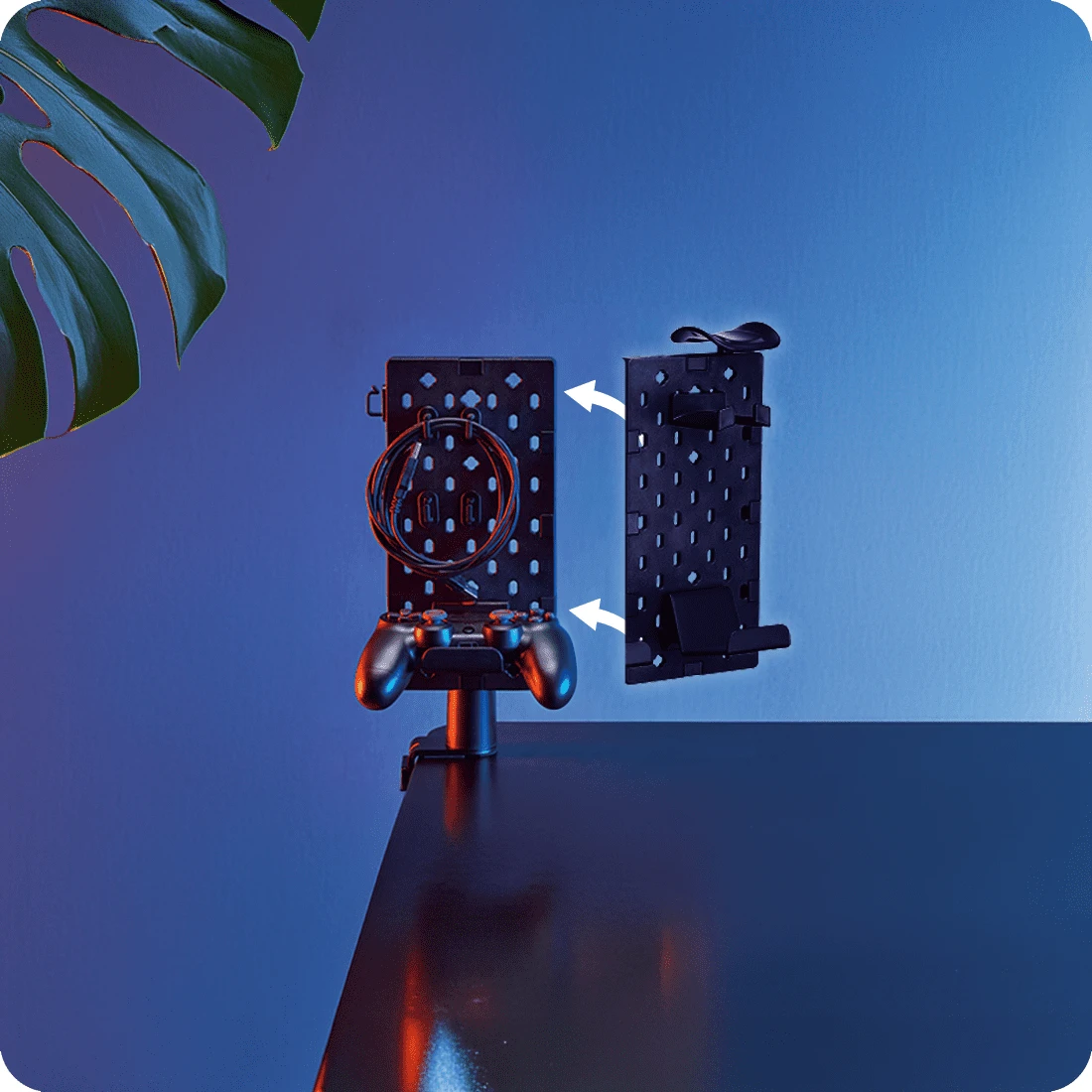 Uchwyt Spacetronik SPB-150B możesz zamontować nad biurkiem, jak i pod nim. Będziesz mógł skorzystać ze stojaka na słuchawki niezależnie od tego, jak wygląda przestrzeń wokół Ciebie. Dodatkowo rotacyjny design sprawia, że możesz obracać stojakiem w zakresie 180 stopni. Wszystko to, żebyś mógł mieć swoje akcesoria growe zawsze na wyciągnięcie ręki. Jednak, by umożliwić Ci jeszcze więcej możliwości aranżacyjnych, uchwyt na słuchawki do biurka ma modułową budowę.