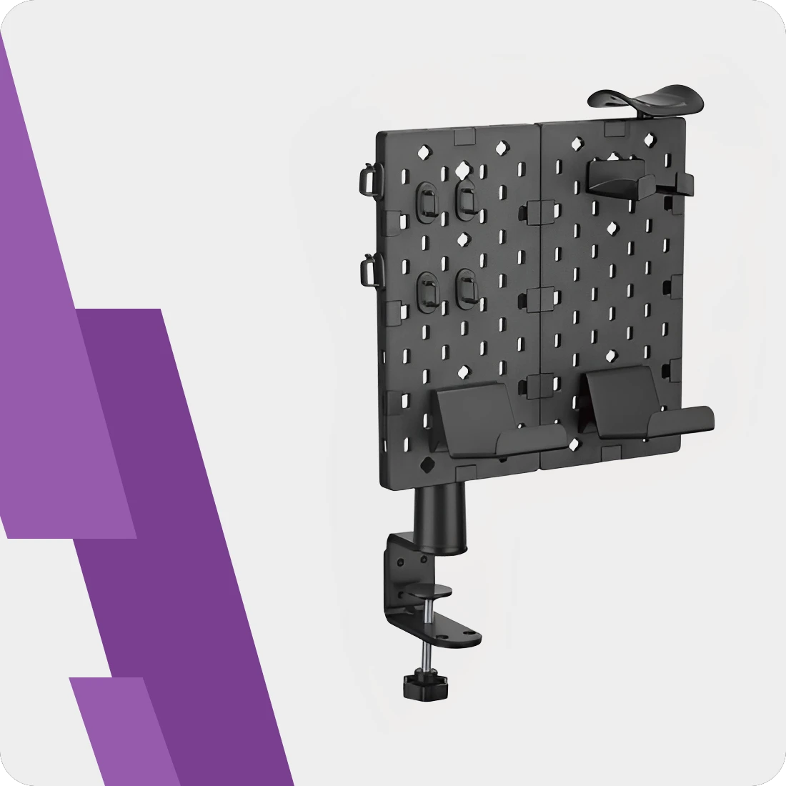 Uchwyt Spacetronik SPB-150B jest nieodłącznym elementem biurka każdego gracza. Można zamontować go zarówno nad biurkiem, jak i pod biurkiem. Modułowa budowa pozwoli Ci dostosować go do swojej przestrzeni. Dzięki temu będziesz mógł zawsze mieć swoje najpotrzebniejsze akcesoria pod ręką.