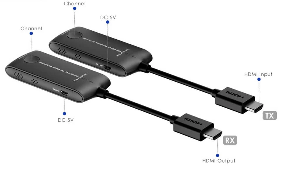 Urządzenie jest wielkości pendrive'a, łatwe do podłączenia z Twoim laptopem/komputerem przy pomocy portu HDMI. Transmiter pracuje w technologii ipcolor, dzięki czemu opóźnienia są praktycznie niedostrzegalne a obrazu może być przesyłany w rozdzielczości 4K w 60Hz. Parowanie jest szybkie, a samo urządzenie może pracować 24/7 bez przeciążeń.