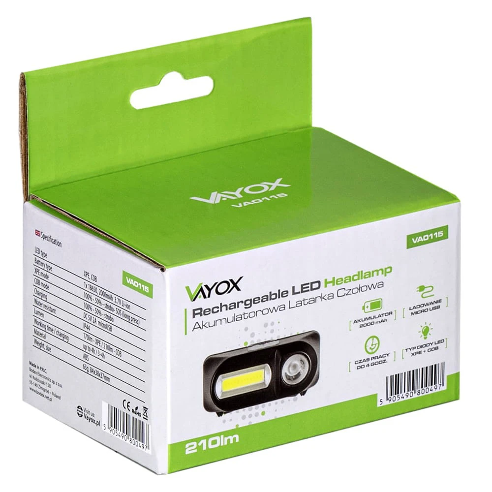 Latarka czołowa akumulatorowa XPE + COB VA0115 Vayox