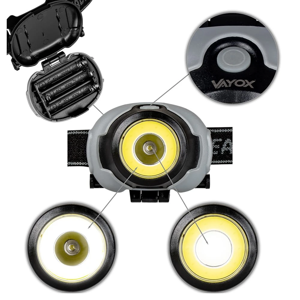 Latarka czołowa bateryjna LED + COB 170lm VA0119 Vayox
