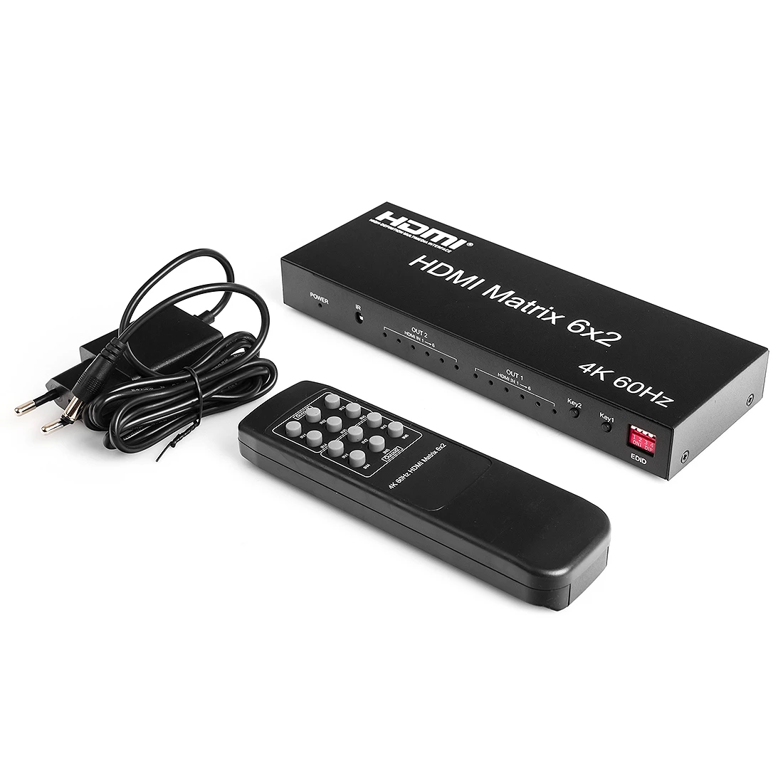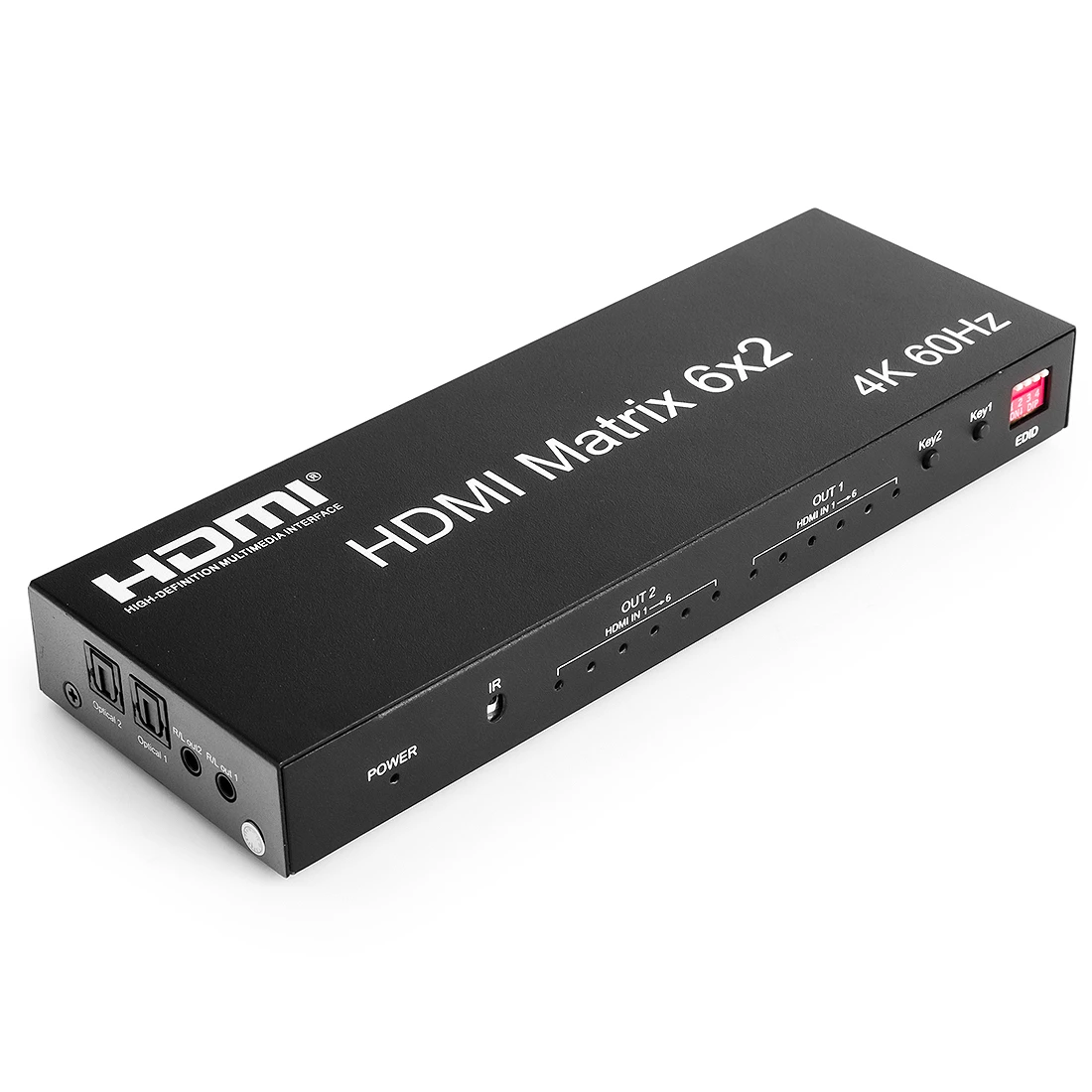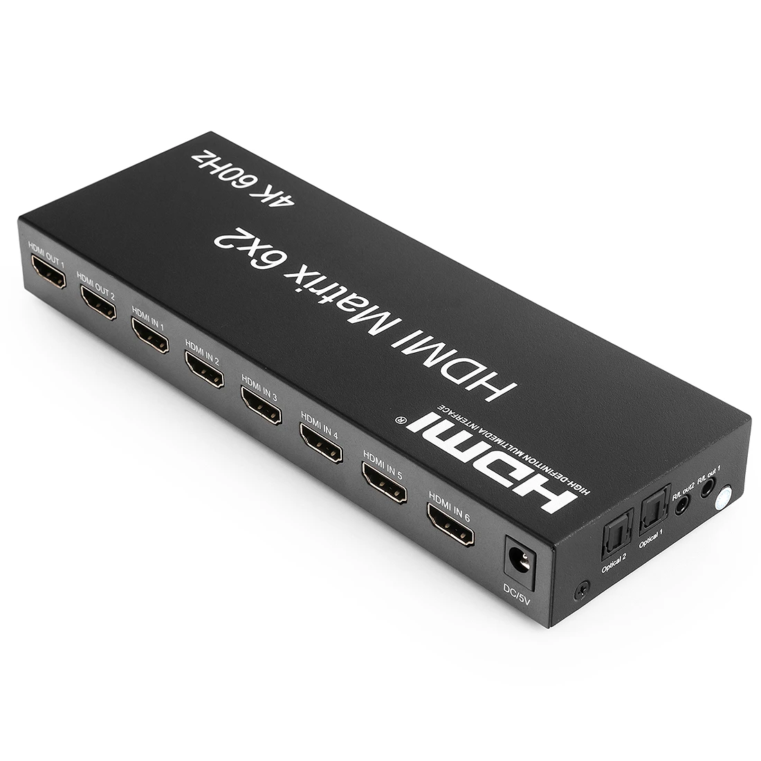 Matrix HDMI 6/2 może łączyć 6 źródeł sygnału HD z 2 wyświetlaczami HD, dodatkowo urządzenie posiada wyjście toslink lub słuchawek stereo. Matrix umożliwia łatwe przełączanie lub podział 6 urządzeń HDMI na 2 monitory lub projektory zgodne z HDMI. Porty wyjściowe mogą realizować niezależne wyjście audio przez stereofoniczny zestaw słuchawkowy. Urządzenie idealnie sprawdza się w zakresie kontroli centrum danych, dystrybucji informacji, prezentacji na sali konferencyjnej, środowisk szkolnych i szkoleniowych.