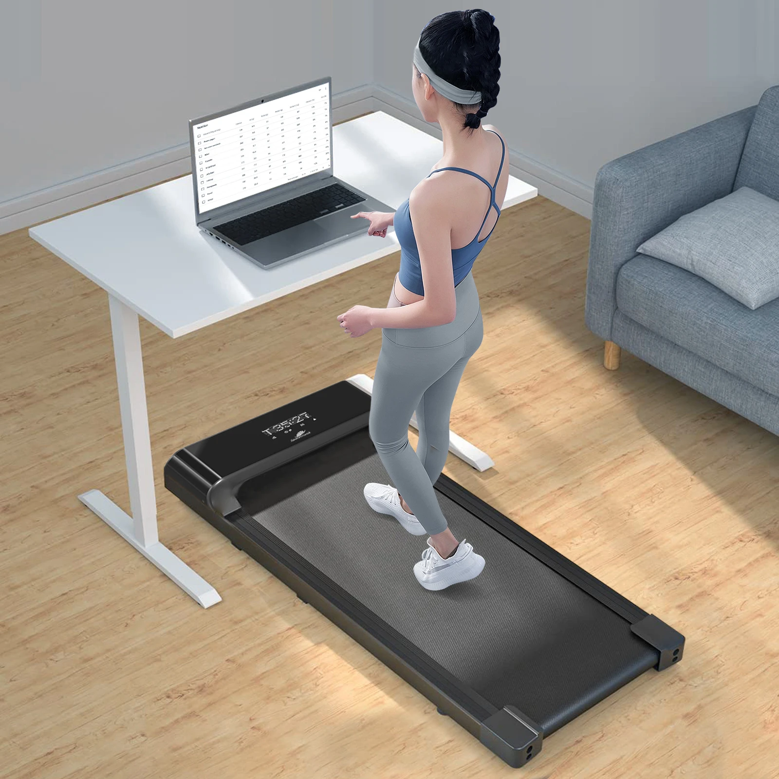 To idealne rozwiązanie dla biurek regulowanych i korzystania z ustawienia biurka dla pozycji stojącej. Nie przerywaj pracy, po prostu połącz ją z treningiem. Ustaw biurko dla pozycji stojącej i skorzystaj z bieżni do biurka Spacetronik Walkee SPE-W01.