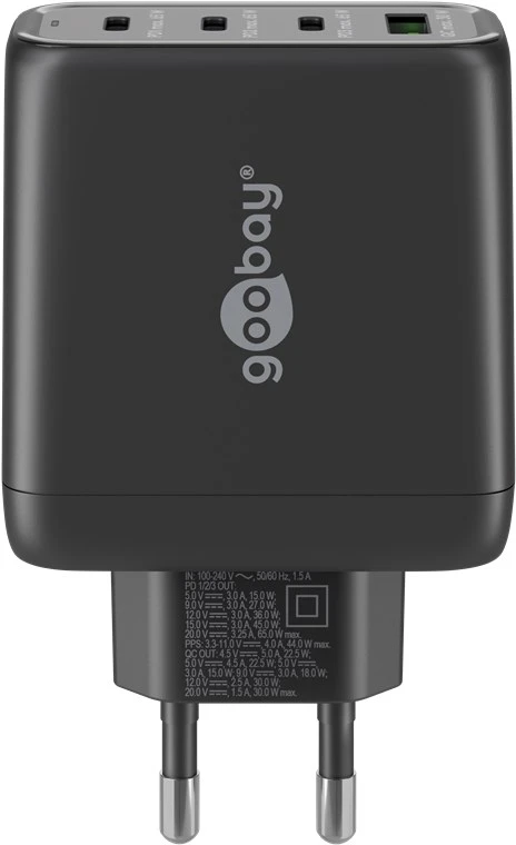 Ładowarka sieciowa Goobay 68W, z portami USB + 3x USB-C, obsługą Quick Charge i Power Delivery