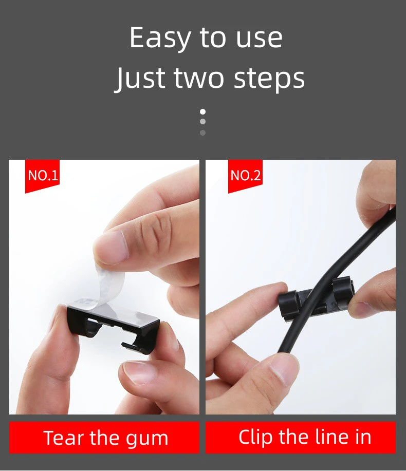 Organizacja kabli nigdy nie była tak prosta. Wystarczy odkleić papier zabezpieczający z tyłu uchwytu i przykleić do wybranej powierzchni. Wkładaj kable wedle potrzeb, a przy pomocy naszych uchwytów utworzysz estetyczny i uporządkowany system zarządzania przewodami. Bez zbędnych plątanin, bez bałaganu!